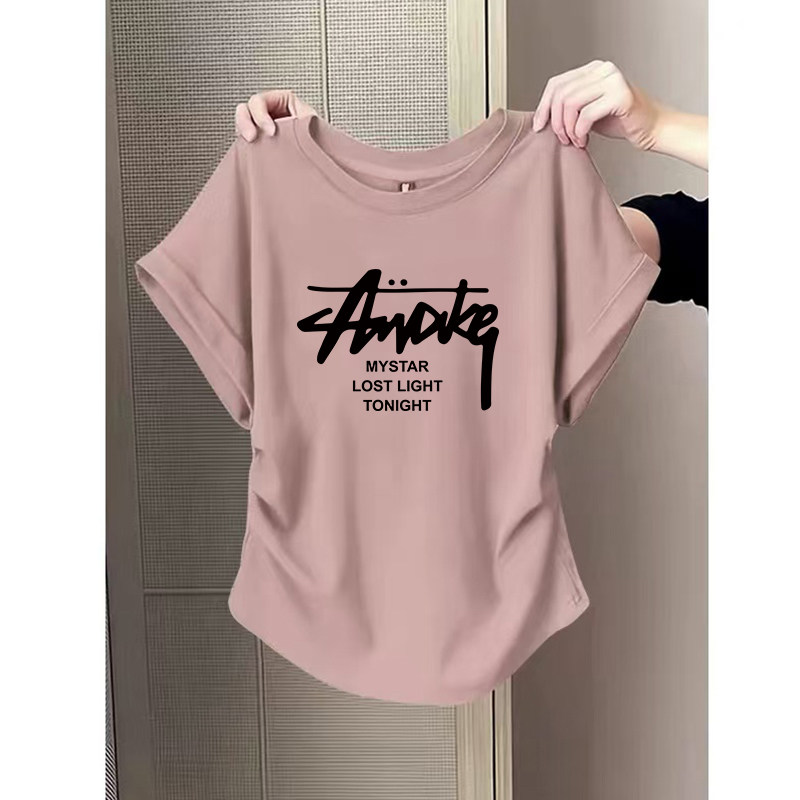 Áo sơ mi ngắn tay áo bông vai mùa hè năm 2025 người phụ nữ mới được thiết kế một phần tư inch sleeve wrench áo thun thắt lưng nếp gấp áo khoác