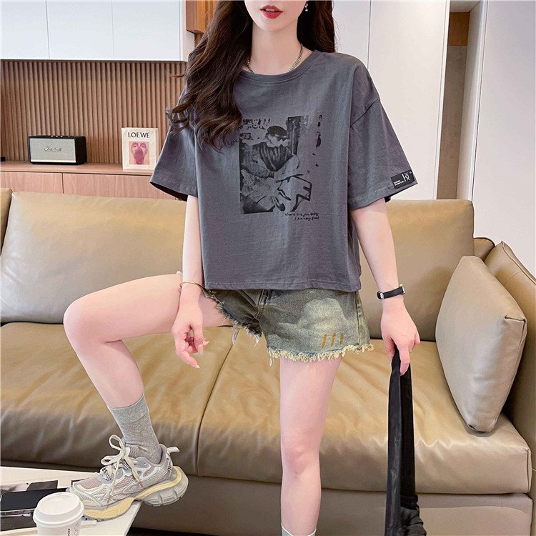 Quần áo cỡ lớn của phụ nữ áo sơ mi ngắn tay bông mùa hè năm 2025 người phụ nữ nhỏ và lỏng lẽn trên quần áo thiết kế ngắn