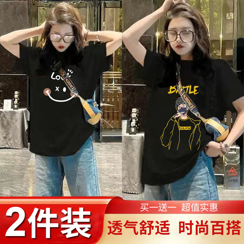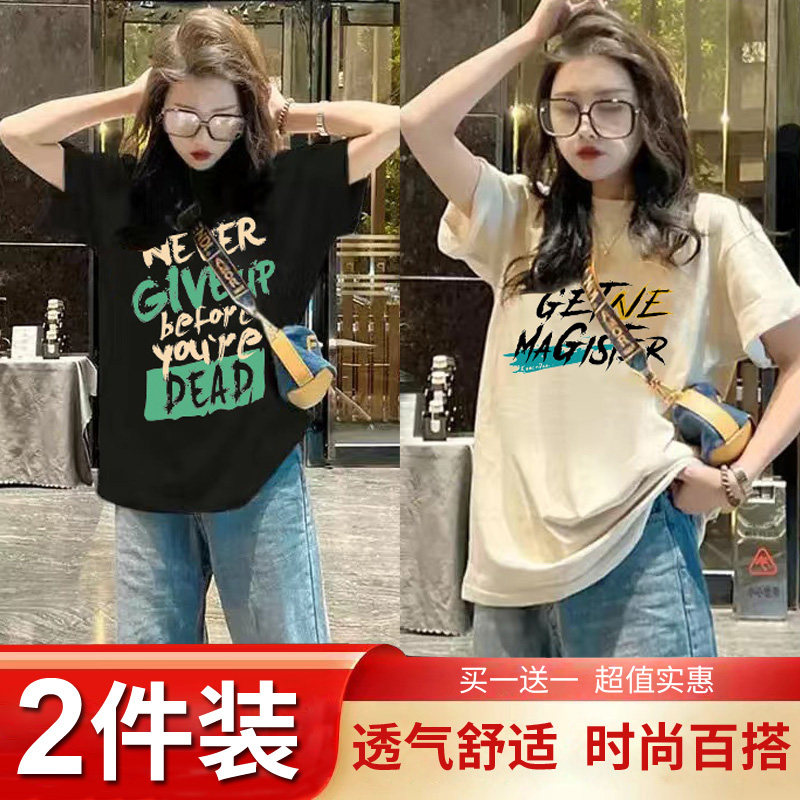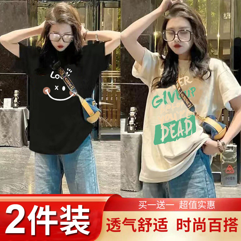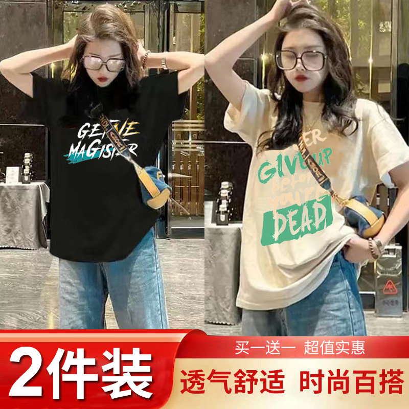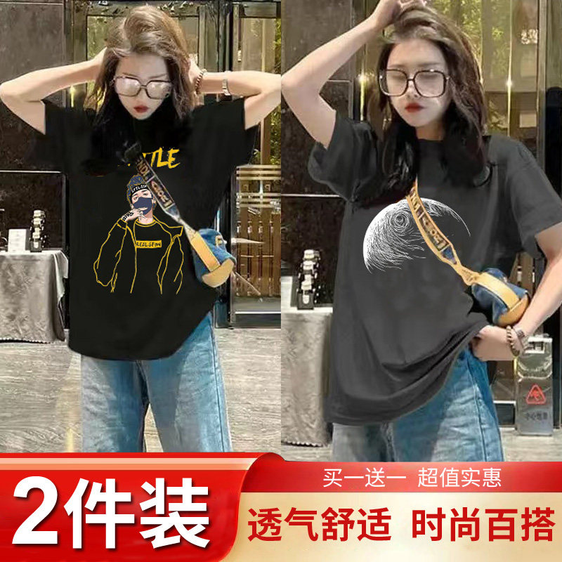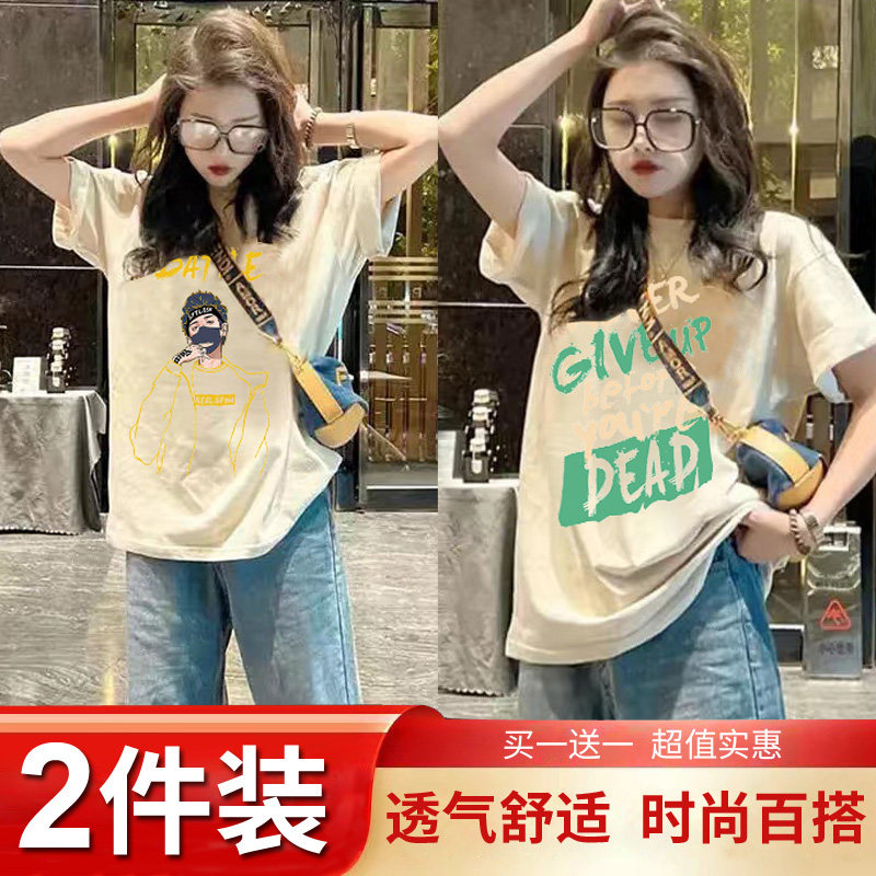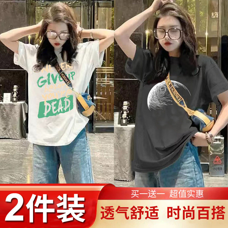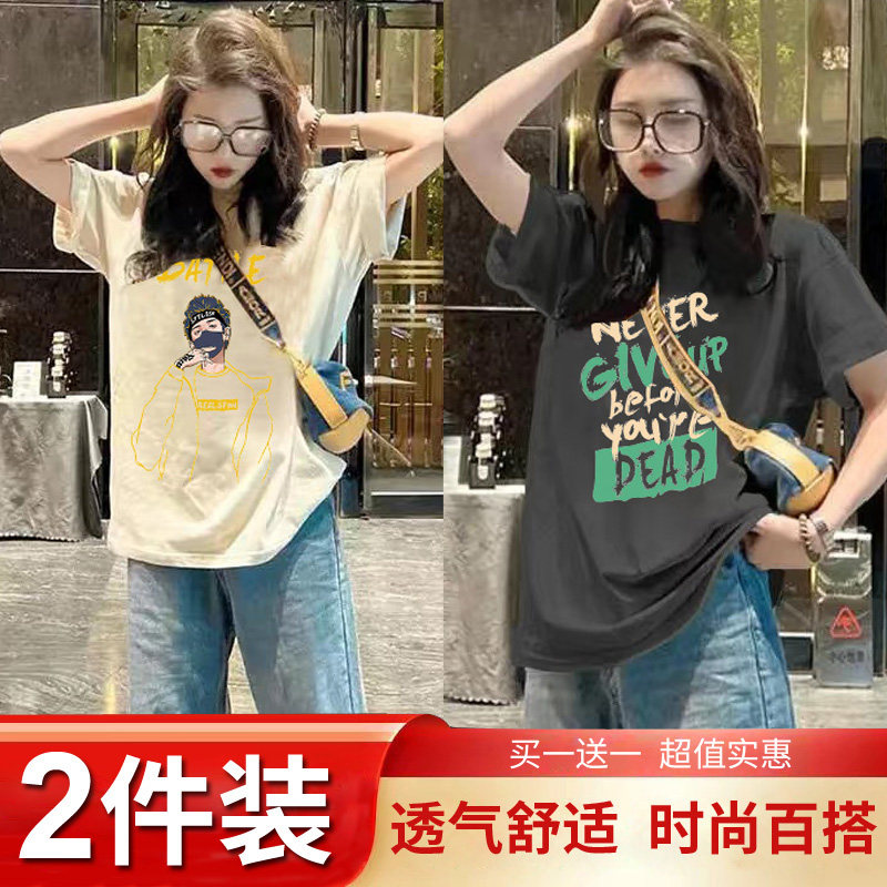 Mua một tặng một mùa hè trang phục 2024 mới ngắn tay áo T-shirt chic cho phụ nữ Hàn Quốc lỏng lẻo nửa tay áo T-shirt hiển thị skinny top