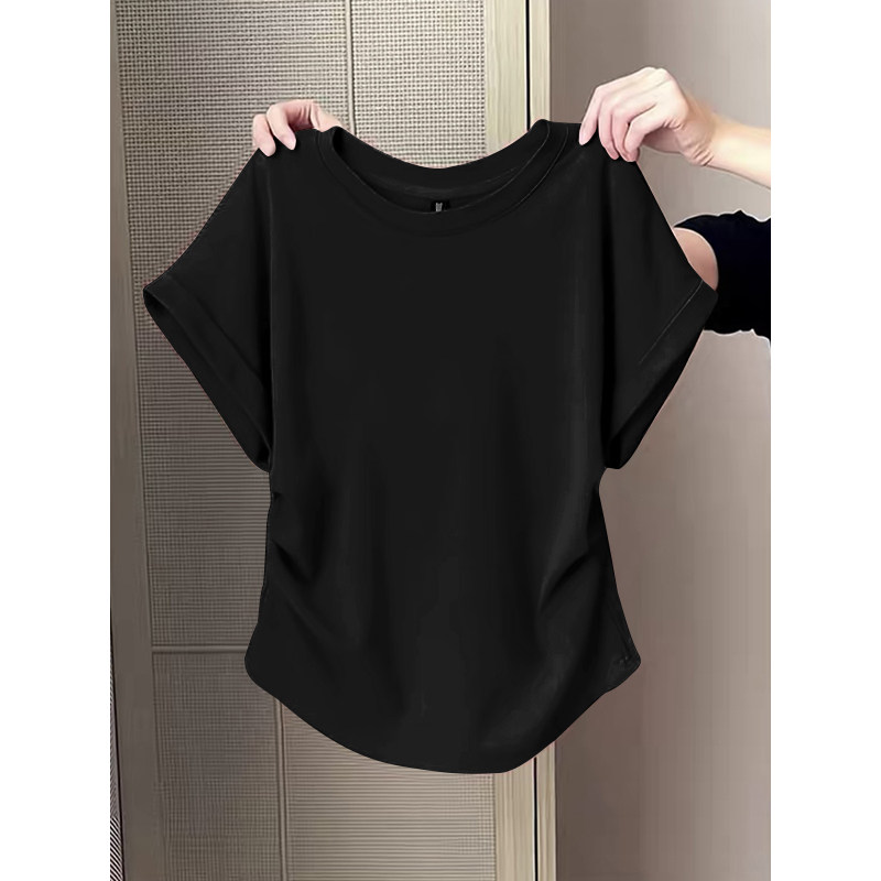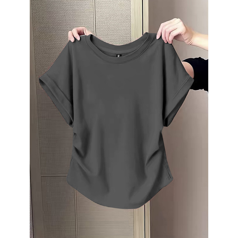 1/4 inch sleeve wrench vai áo sơ mi hồng tay áo ngắn mùa hè năm 2025 người phụ nữ mới bất thường nếp cuộn thắt lưng mỏng quần áo