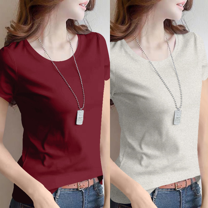 Áo thun cotton ngắn tay nữ mùa hè 2025 kiểu dáng mới phù hợp với vai thon gọn