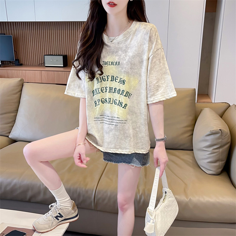 Thiết kế ít áo sơ mi ngắn tay nữ mùa hè hàn quốc phiên bản kích thước rộng lớn người đàn ông nhỏ hàng loạt bông tie-nhuộm quần áo