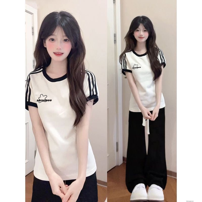 Giải trí nữ mùa hè năm 2025 mới bông ngắn tay áo T-shirt quần học sinh nữ tuổi hai bộ