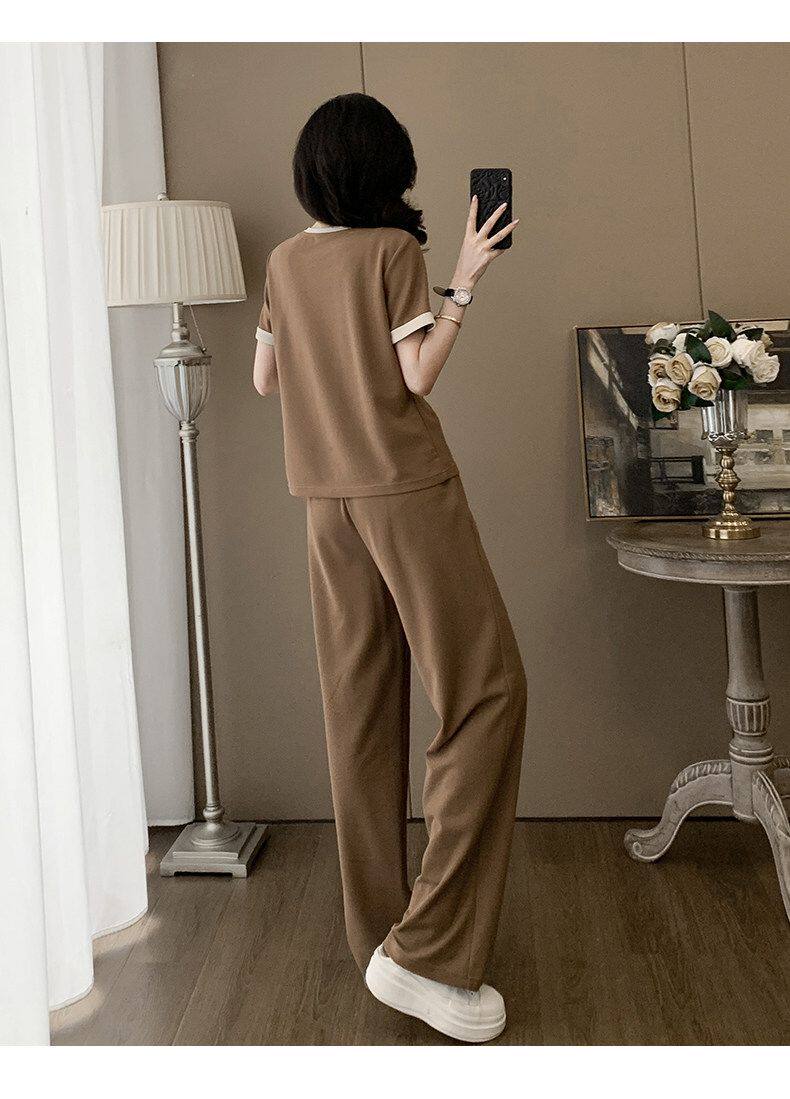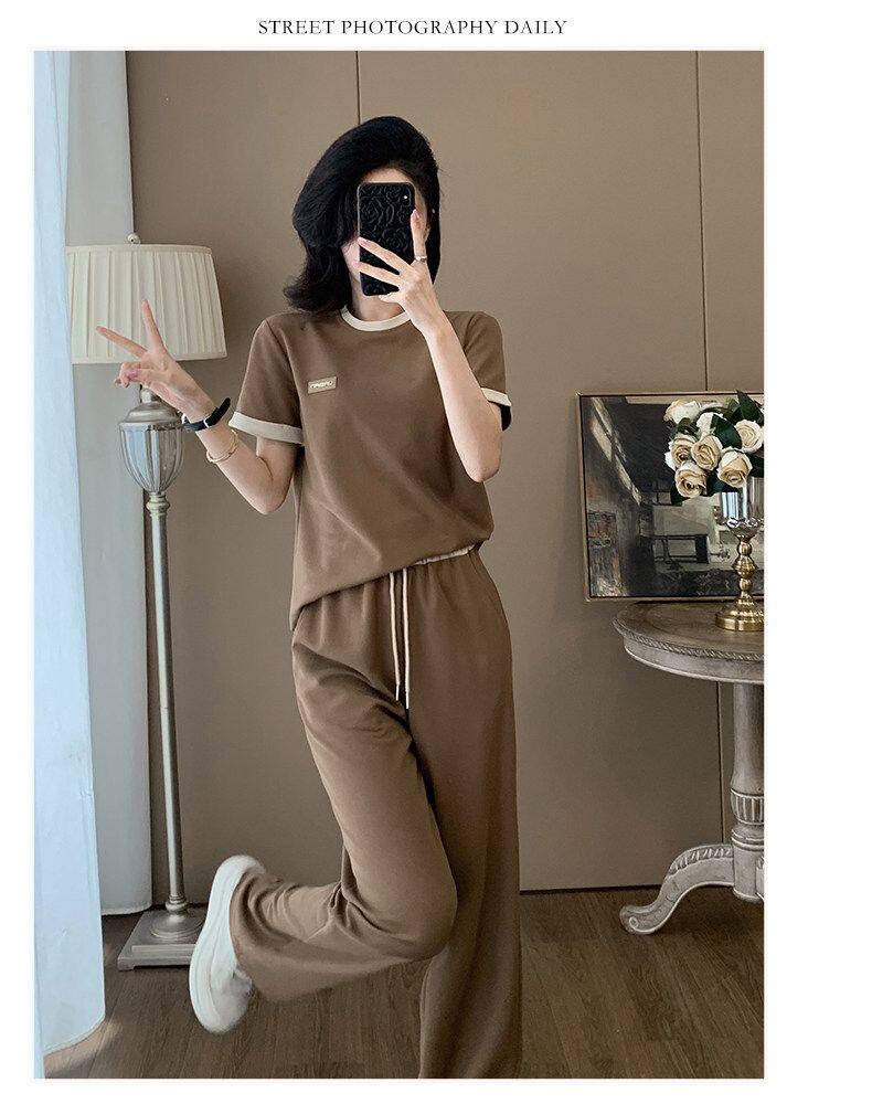 Trang phục thể thao giản dị cho phụ nữ mùa hè 2026 Mới Lưới Đỏ Nhỏ Thời trang Giảm Tuổi Tay áo ngắn Quần đùi rộng Hai mảnh