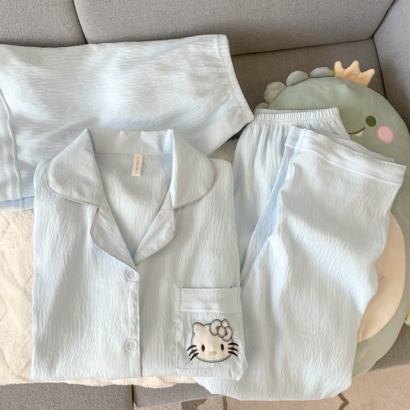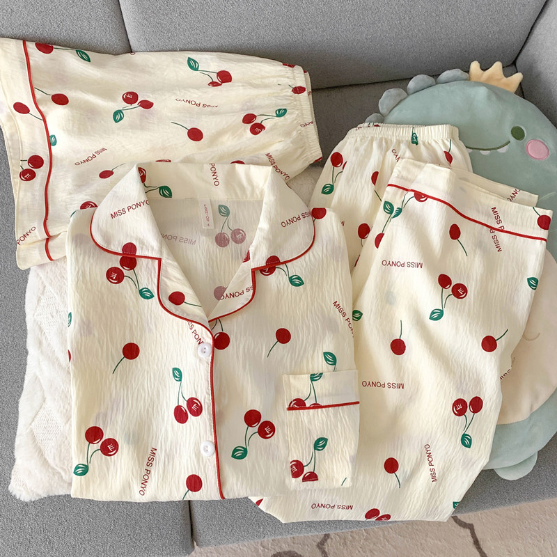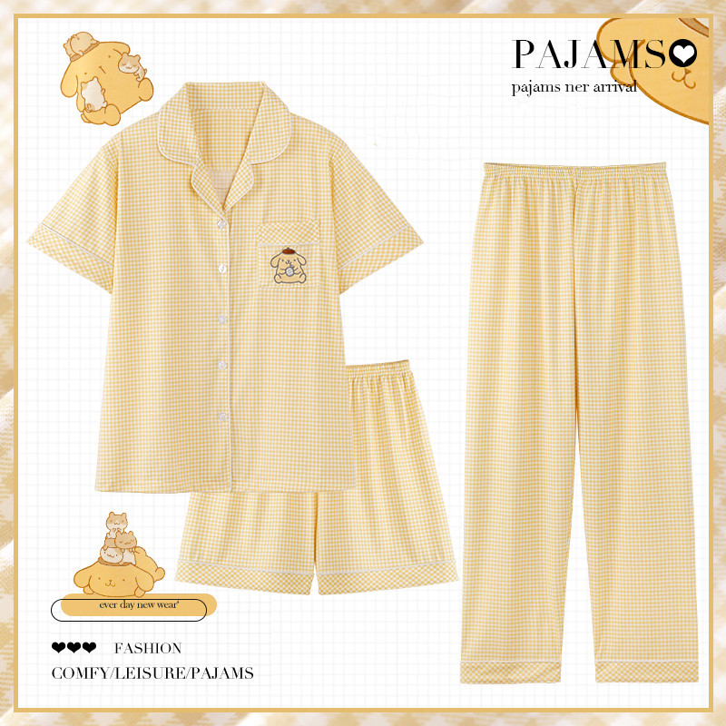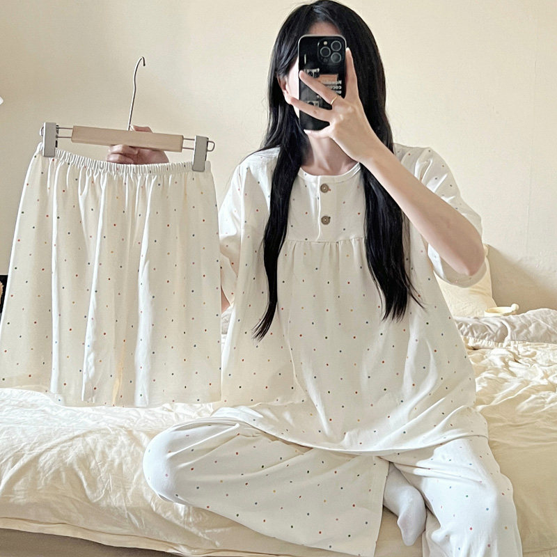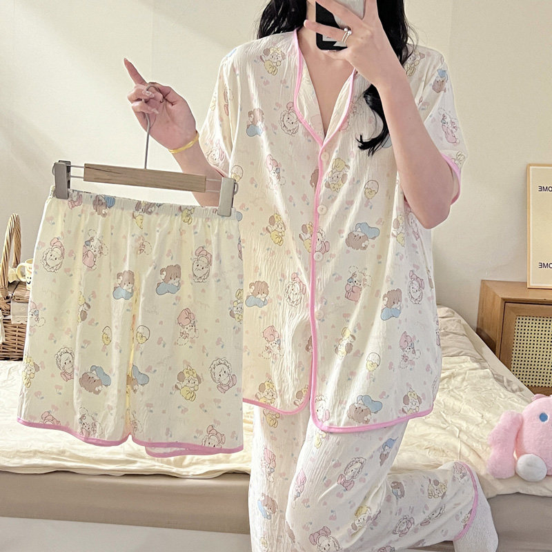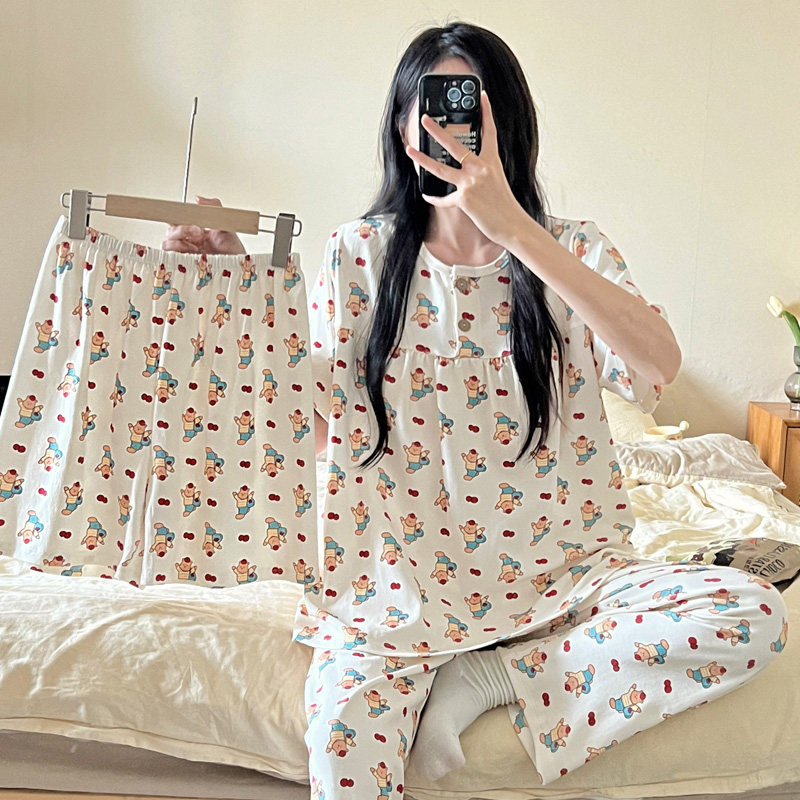 Năm 2025 bộ đồ ngủ mùa hè nữ bông ngắn tay ins đáng yêu quế chó net đỏ mùa hè ba bộ