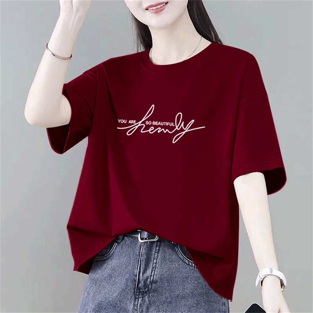 Bông ngắn tay áo thun cho phụ nữ, thời trang vòng cổ phụ nữ mùa hè mới lỏng lẻo phù hợp với áo thun nửa tay áo