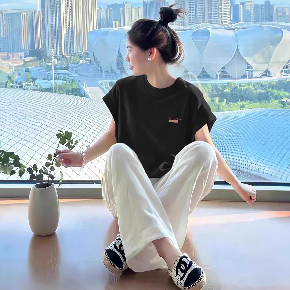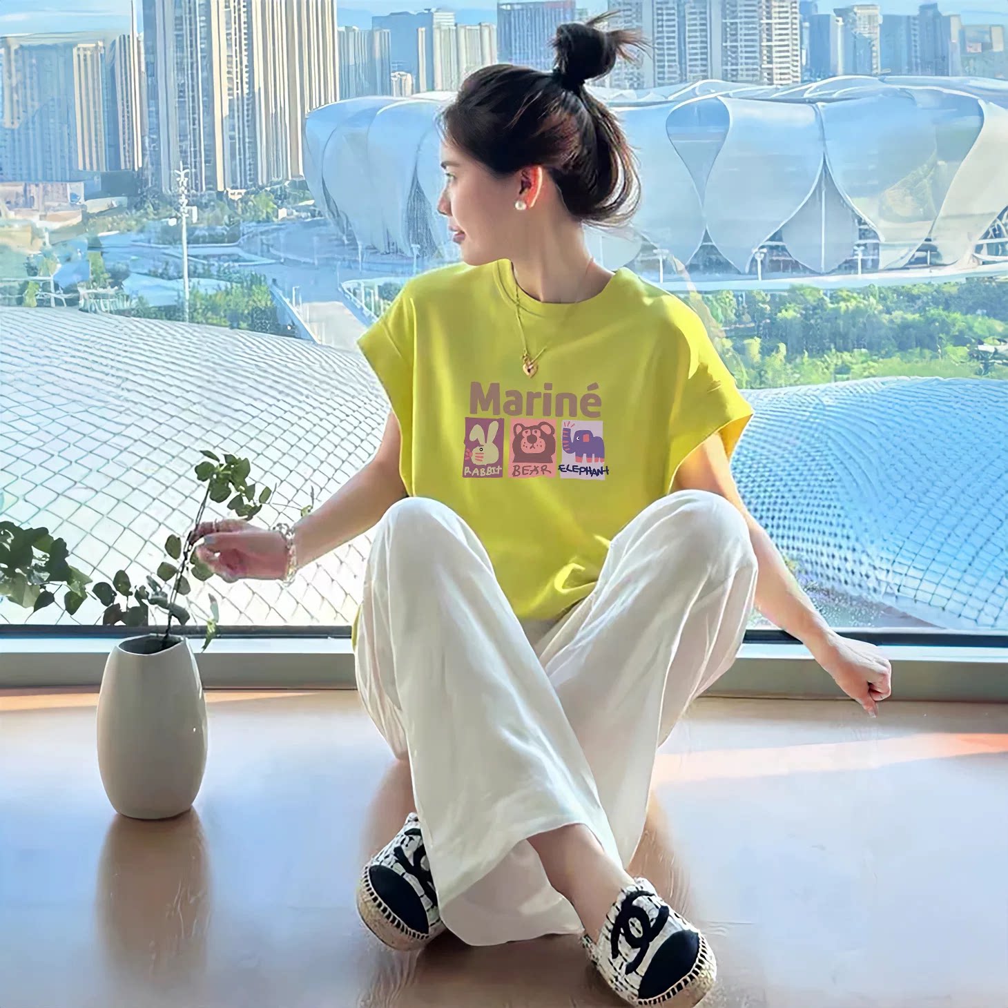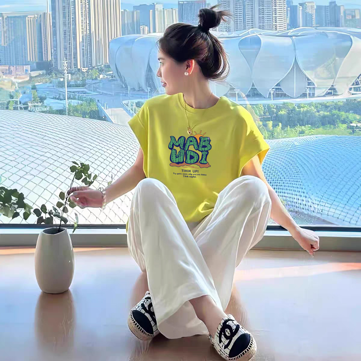 Bông bông dopamine vôi màu xanh lá cây áo sơ mi ngắn tay áo phụ nữ mùa hè năm 2025