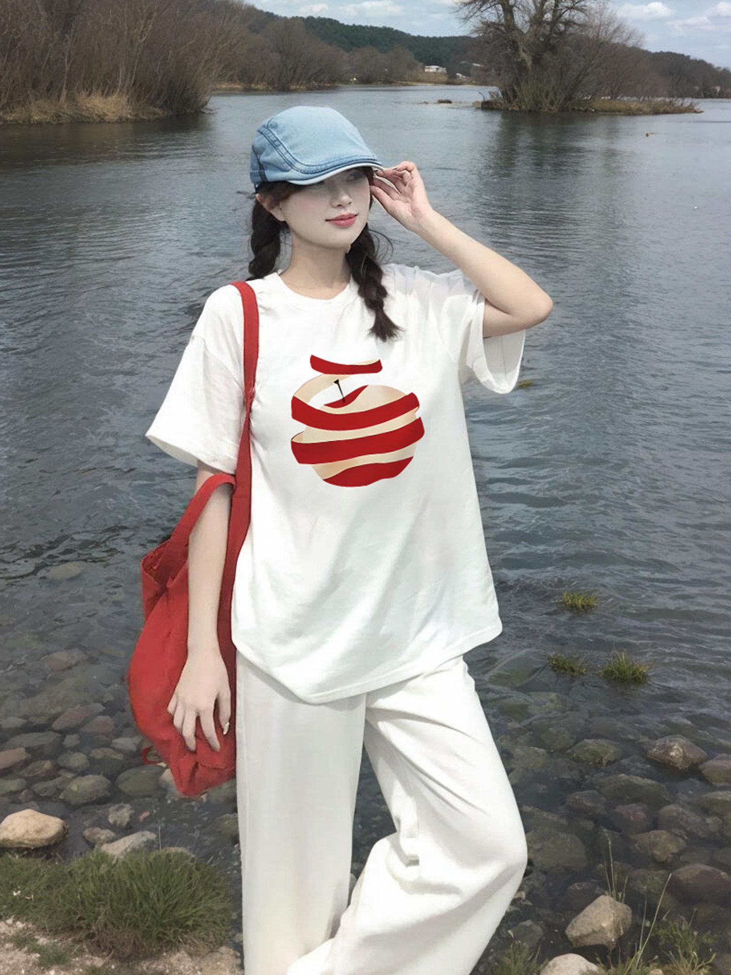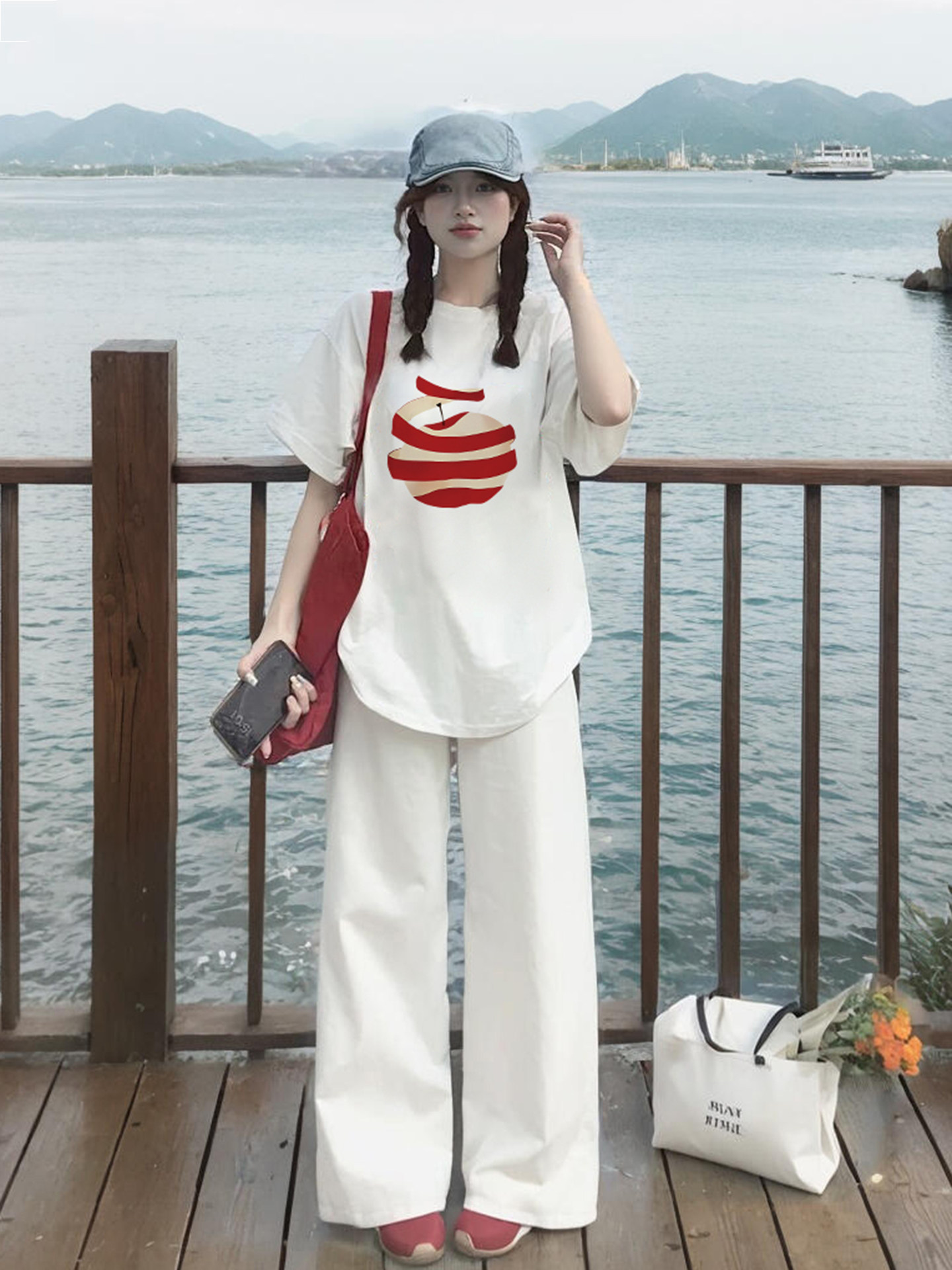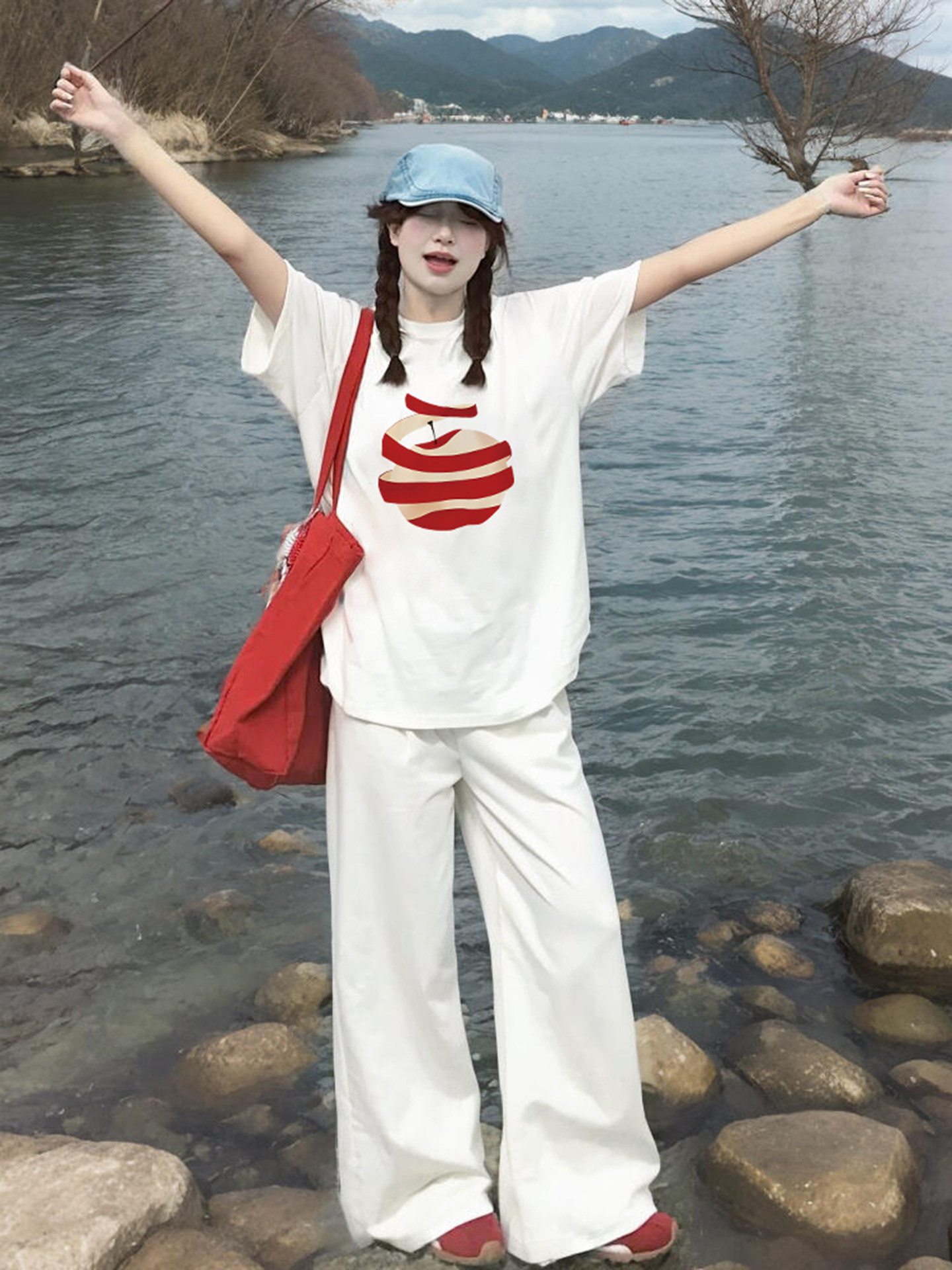 Áo thun trắng ngắn tay mùa hè năm 2025 người phụ nữ mới nổ bông nửa tay rộng mùa hè ootd mặc áo thời trang