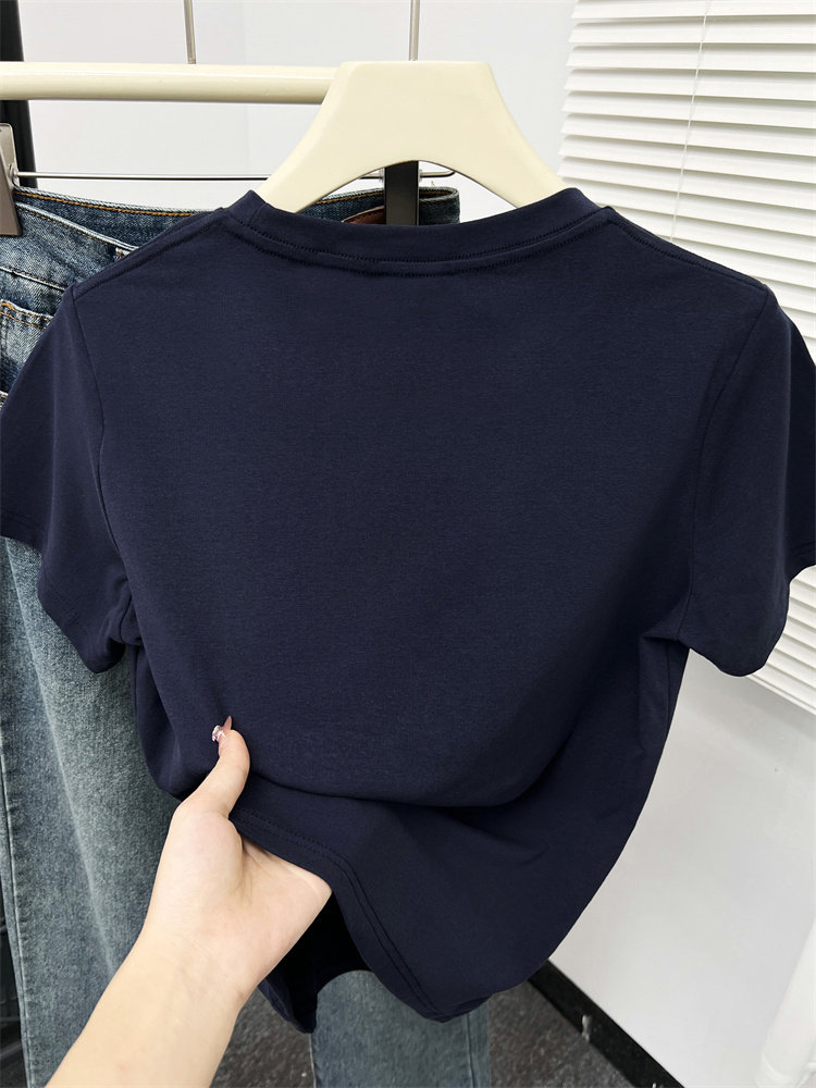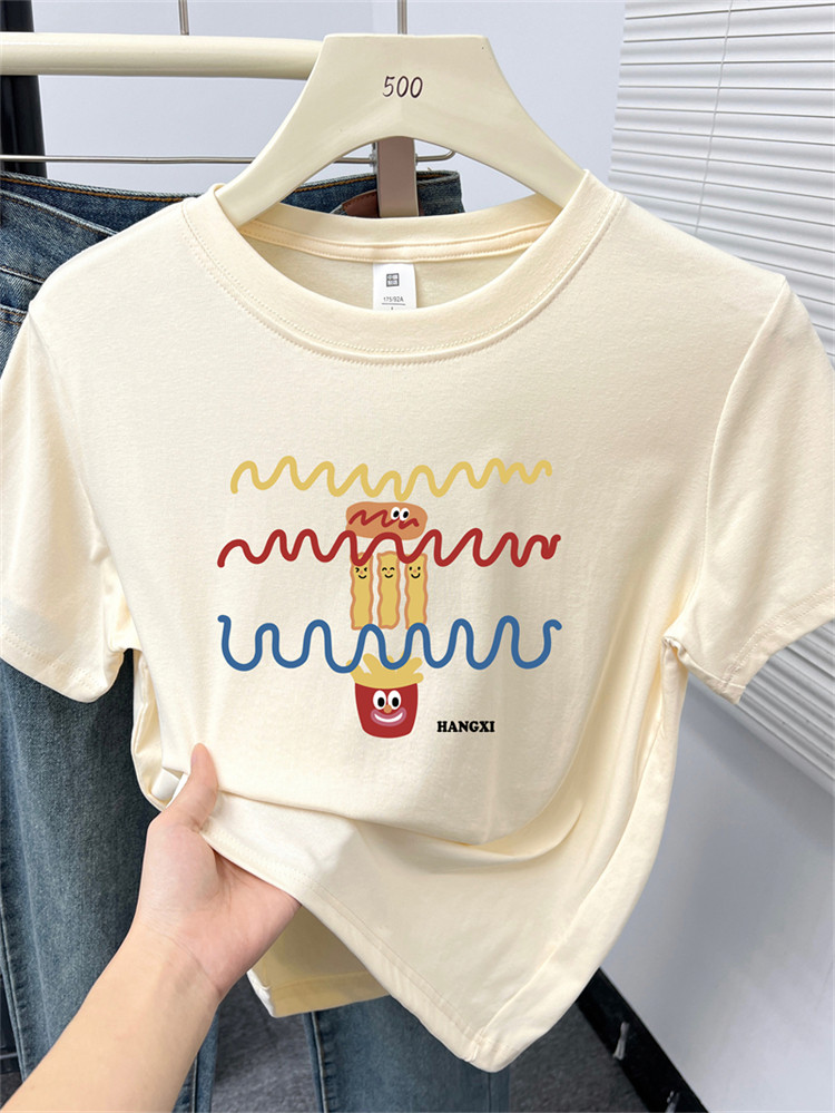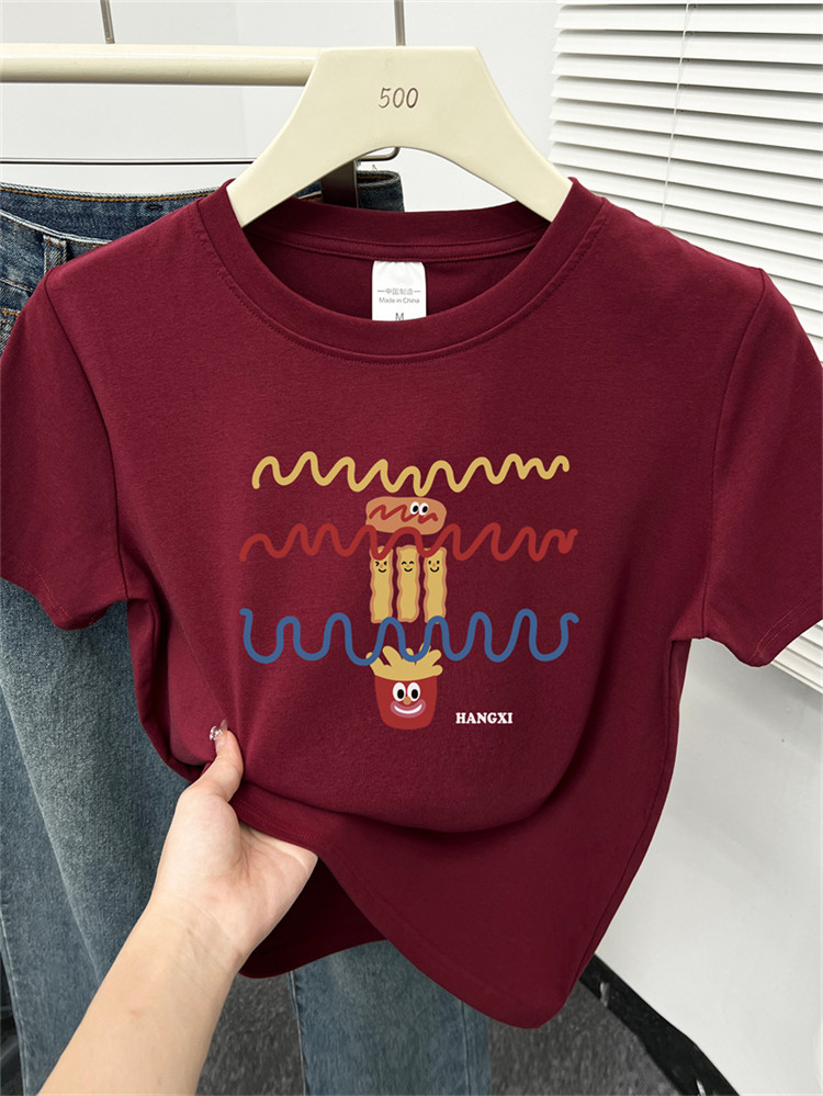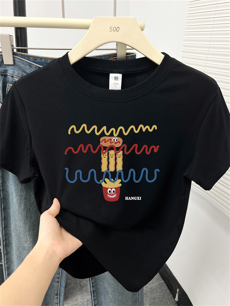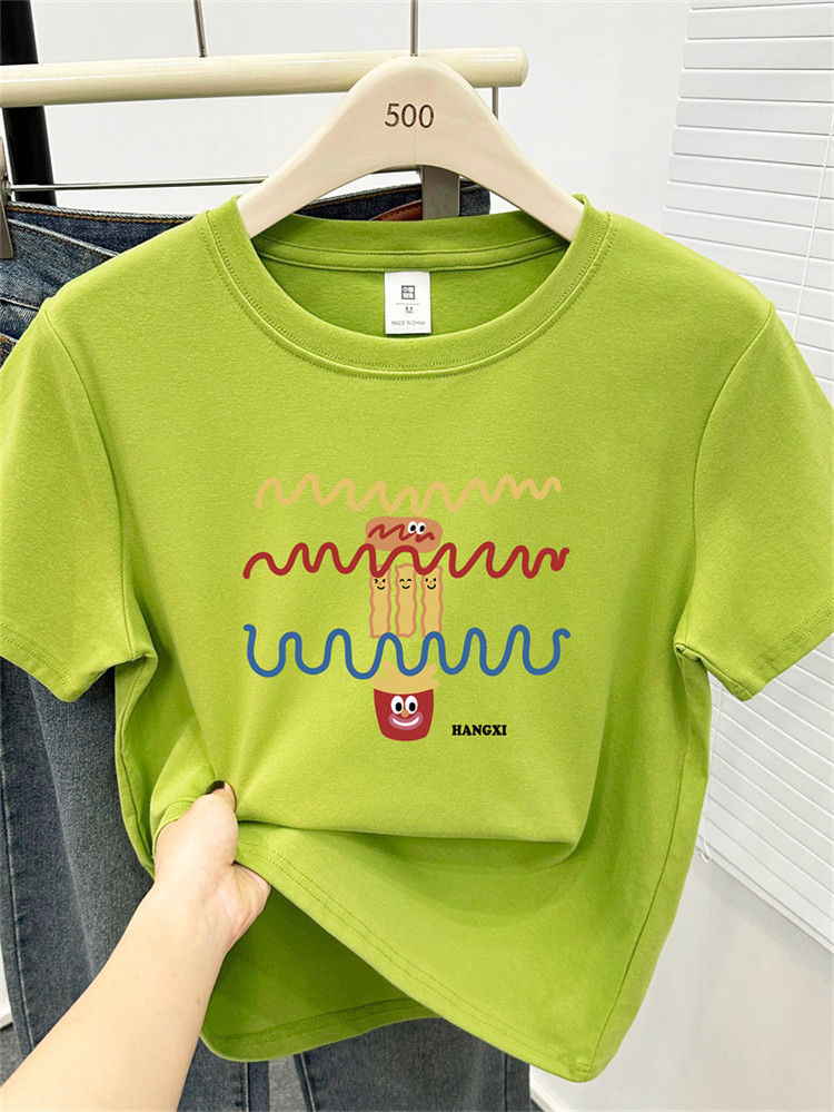 Vai che dạ dày giấu thịt áo thun in mùa hè mới ngắn tay áo nữ 200 kg kích thước một nửa áo sơ mi