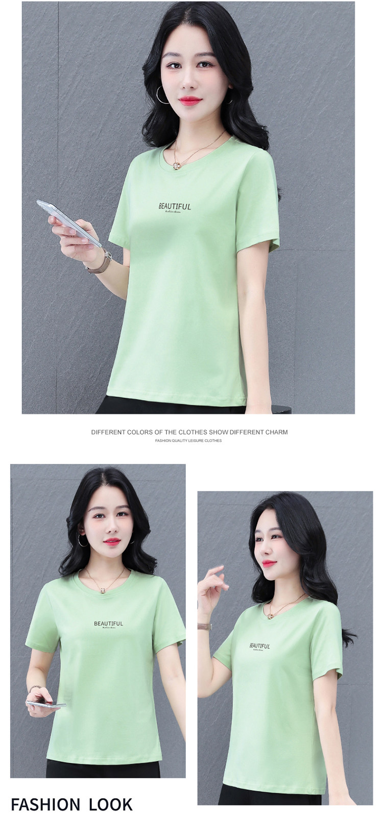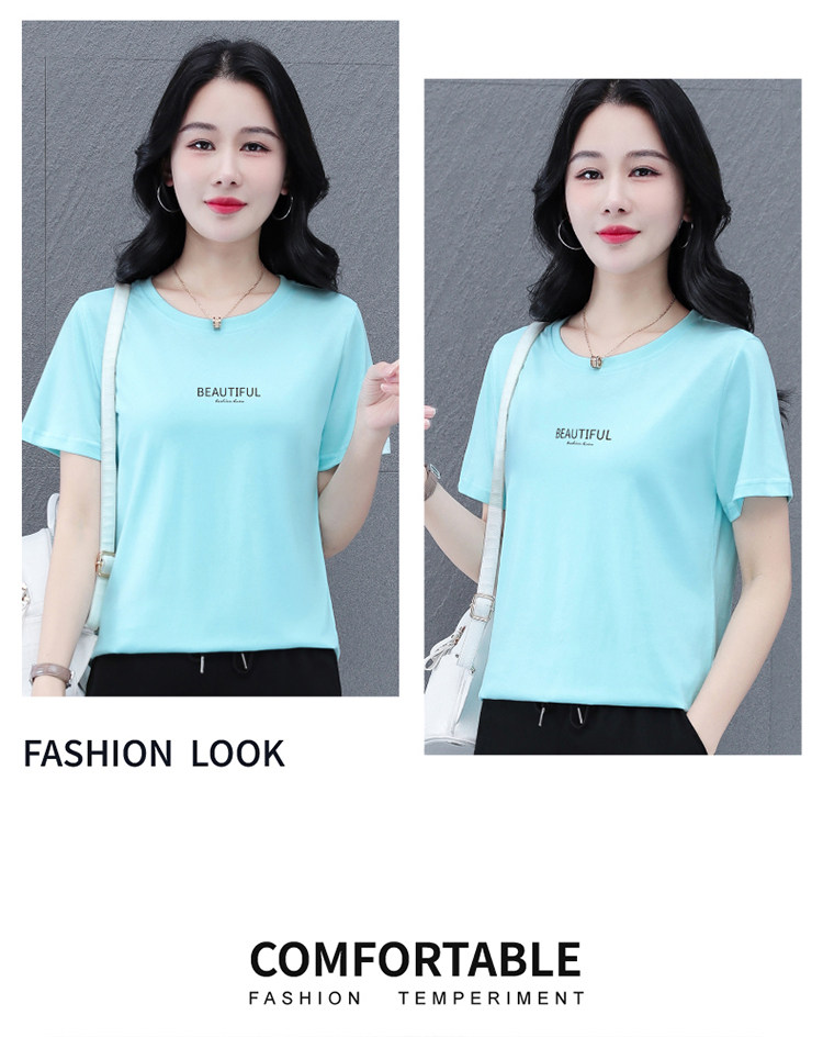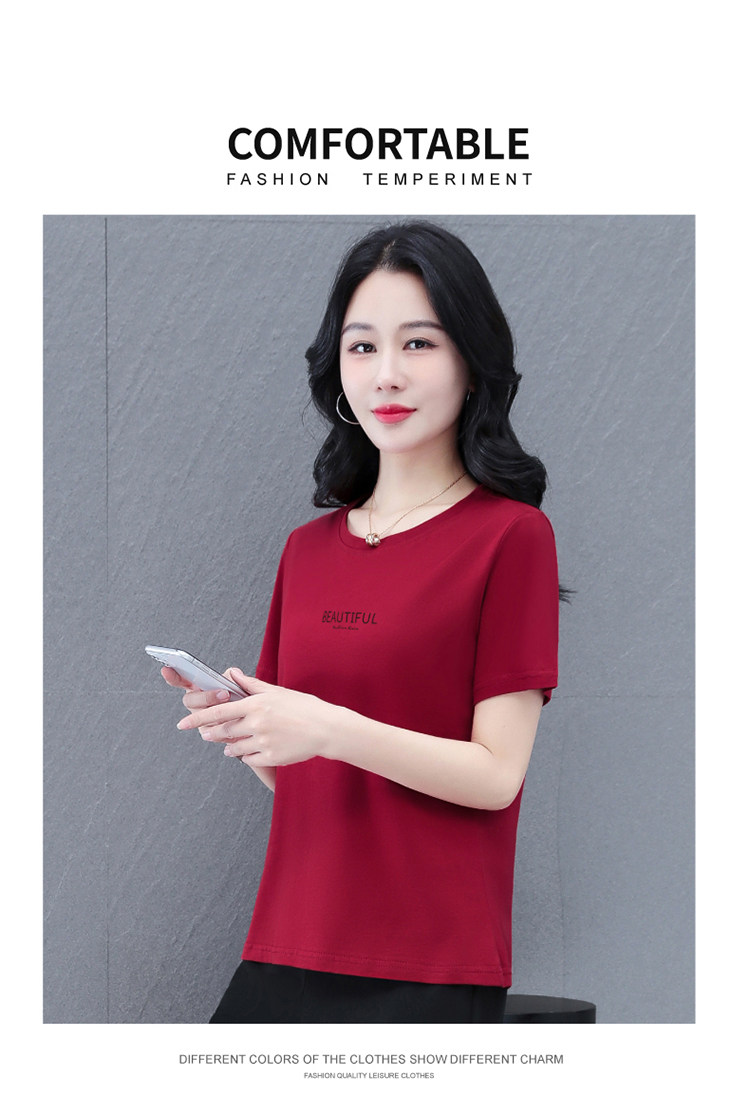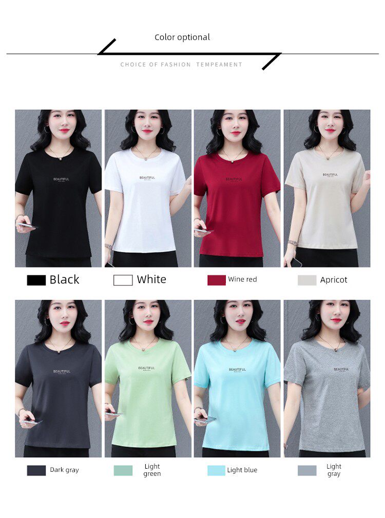 Bông gõ kiến ngắn tay áo của phụ nữ mùa hè năm 2025 mẹ trung niên nhìn rộng cổ áo thun áo sơ mi