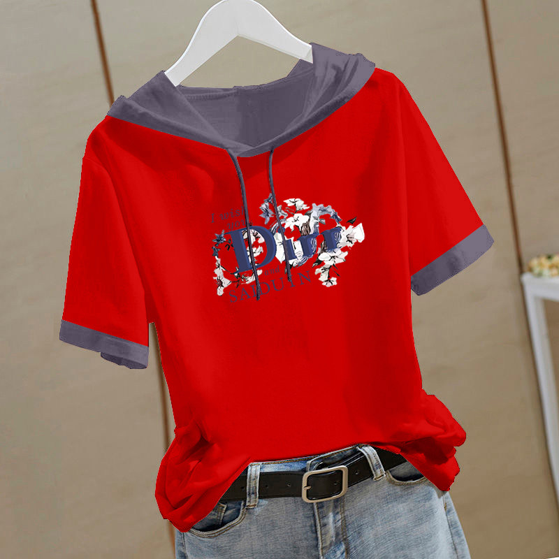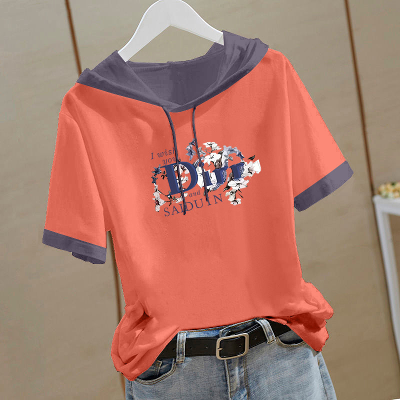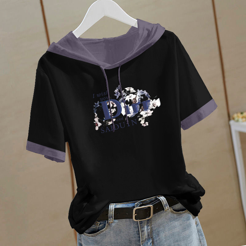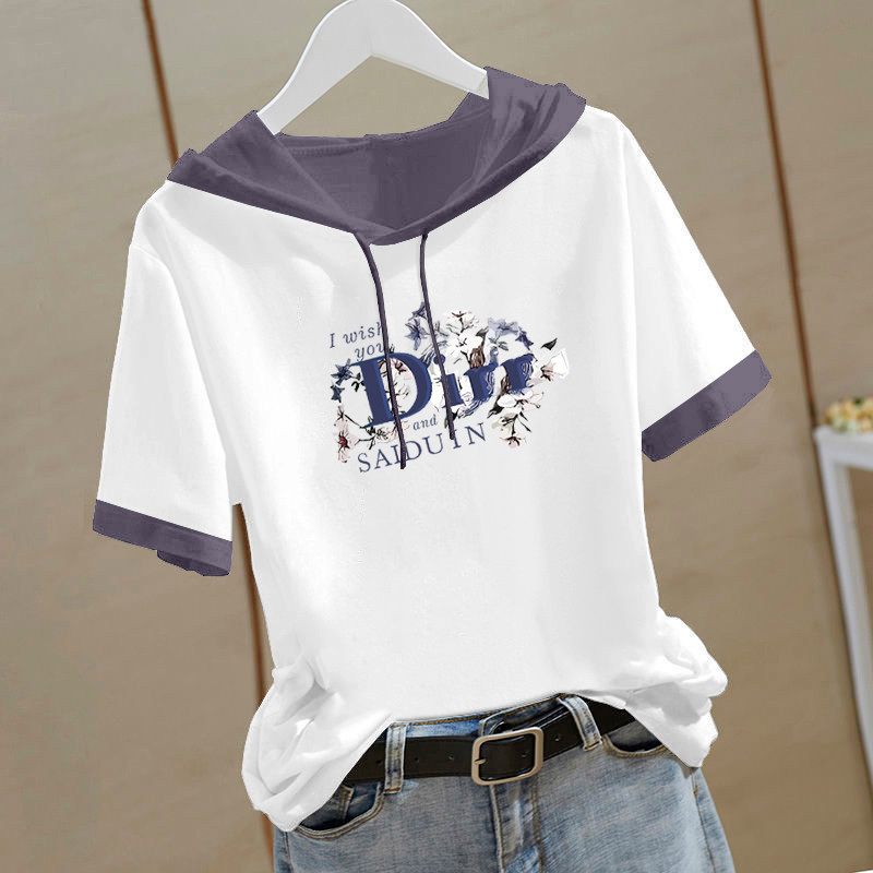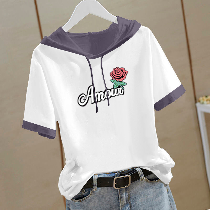 Bông thậm chí mũ màu áo sơ mi ngắn tay mùa hè năm 2025 người phụ nữ mới loose-in giảm độ tuổi của quần áo áo chống ẩm