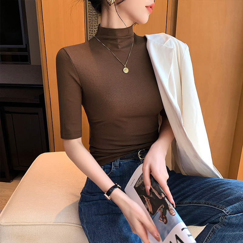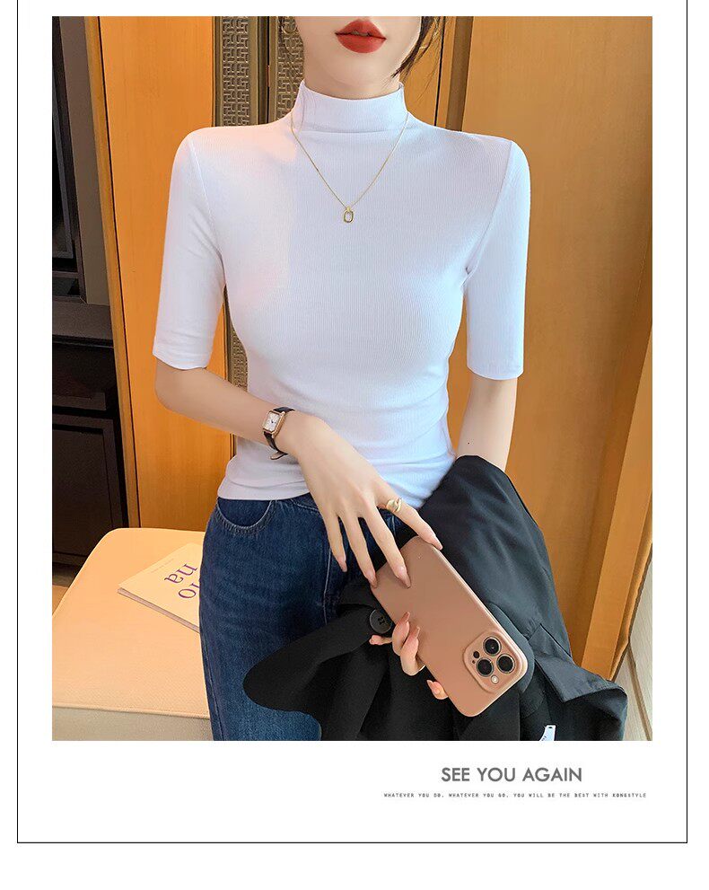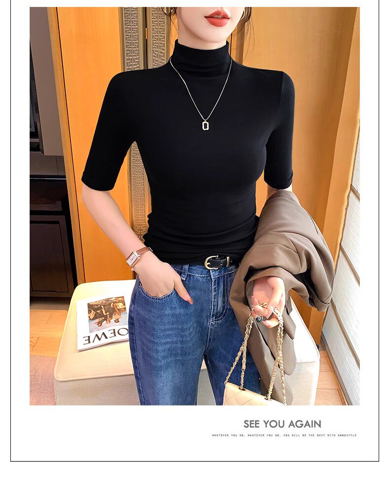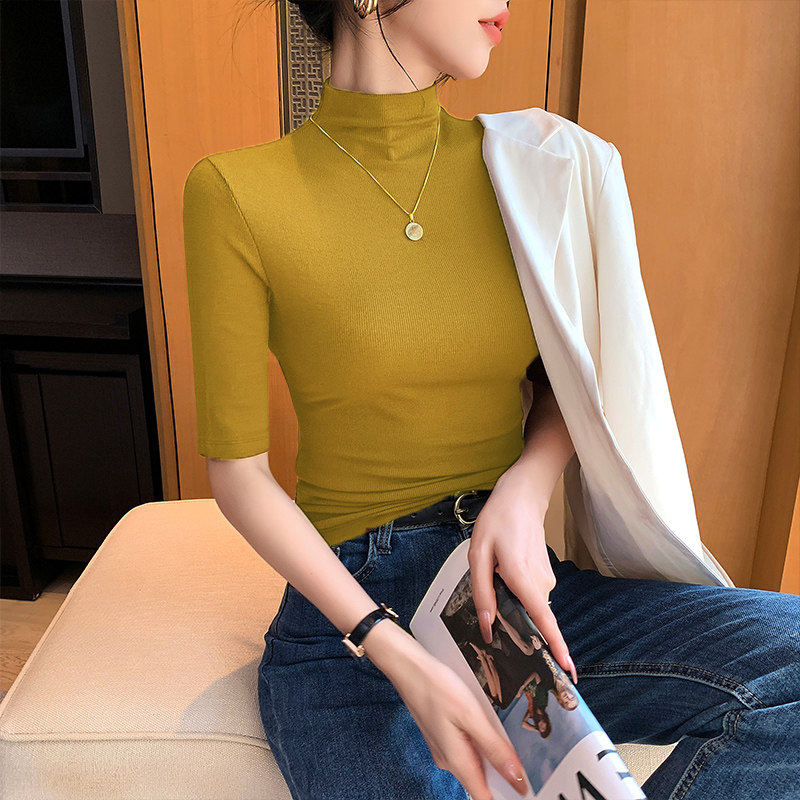 Áo sơ mi nửa cổ áo sơ mi ngắn tay vai phải mùa thu năm 2025 cơ thể mỏng tay áo ở đáy