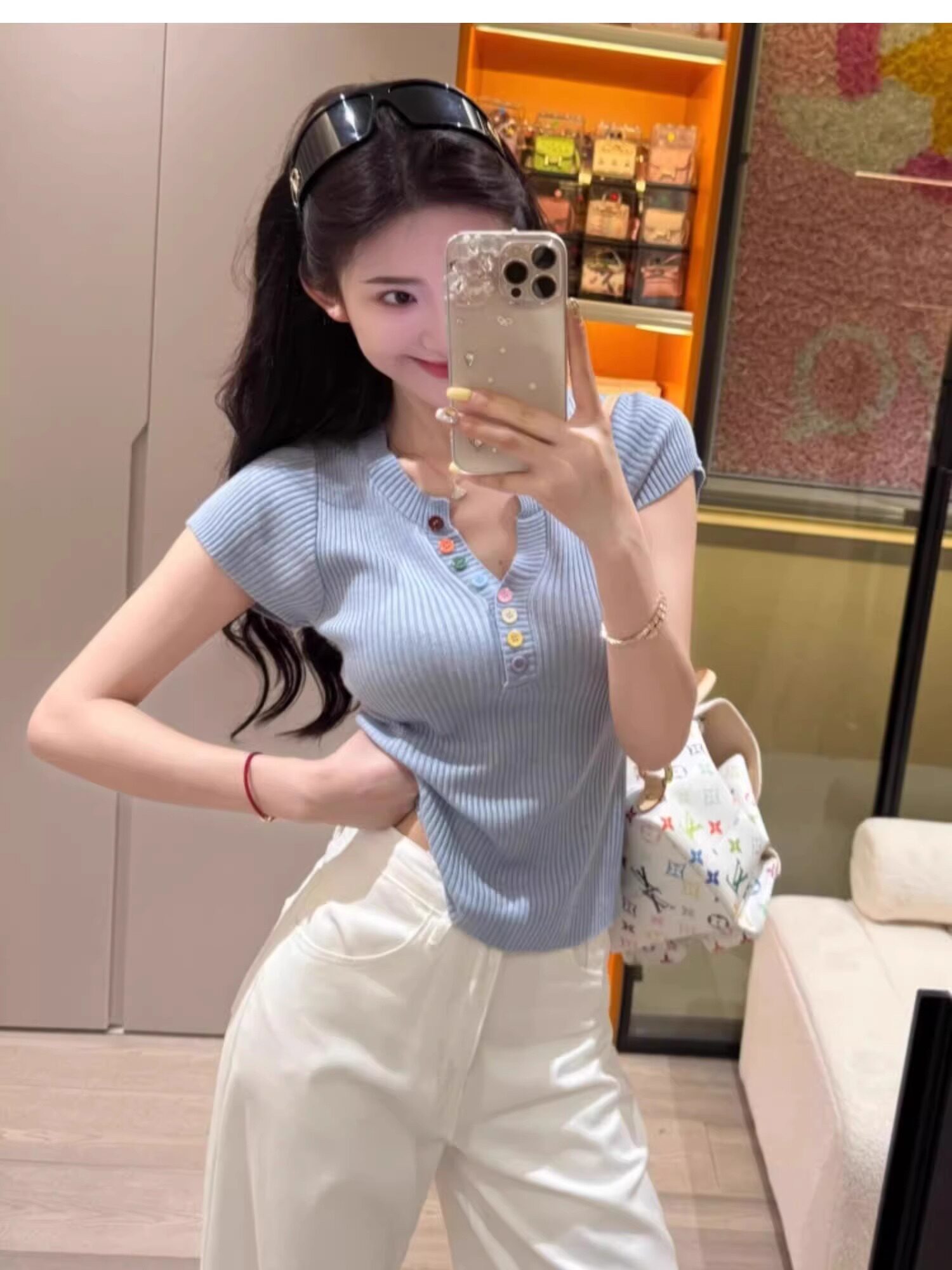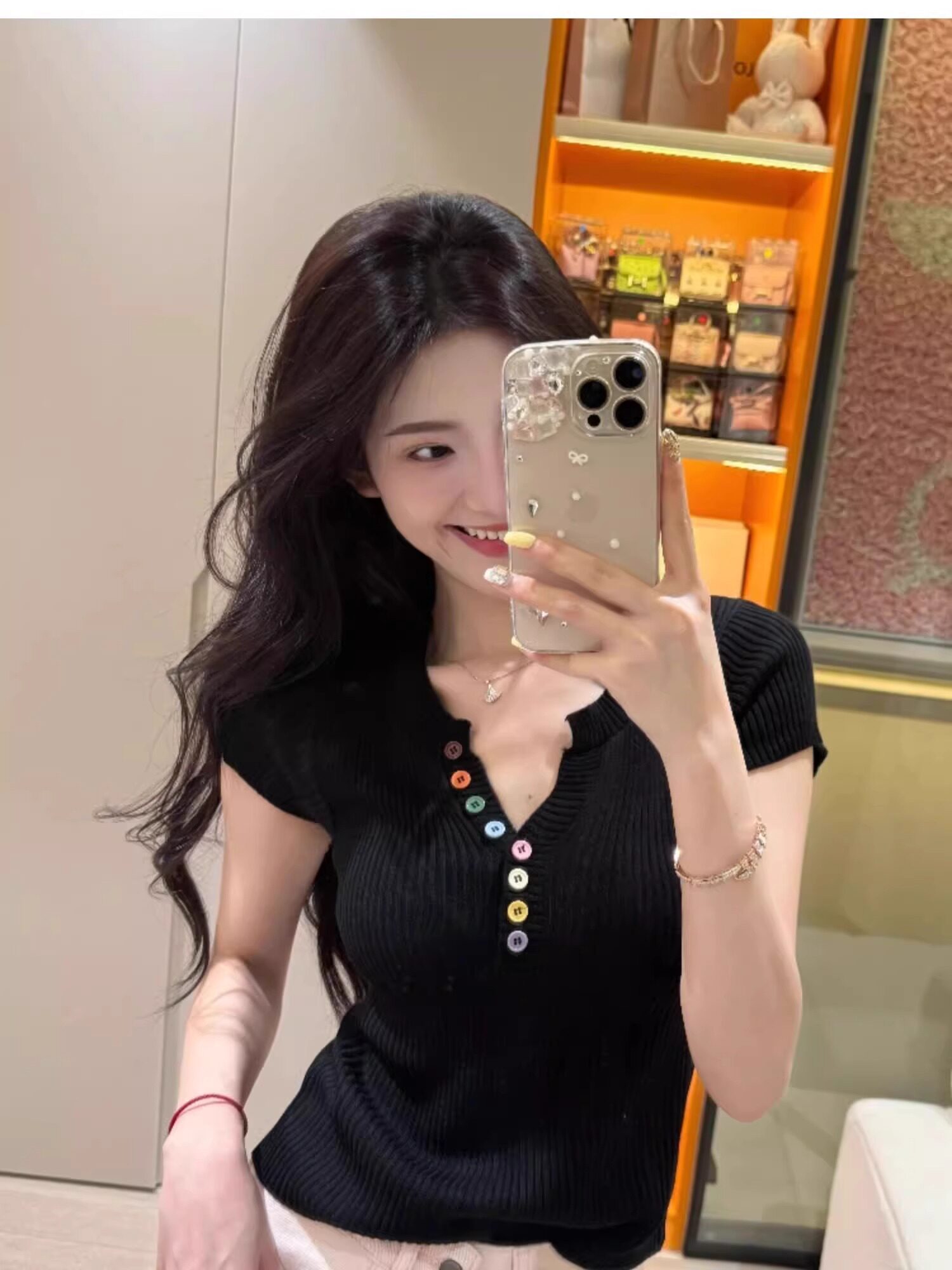 Hàn quốc dopamine mặc áo sơ mi màu hồng áo sơ mi ngắn tay áo mùa hè ngắn v cổ áo khoác