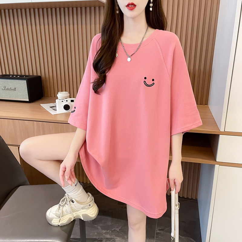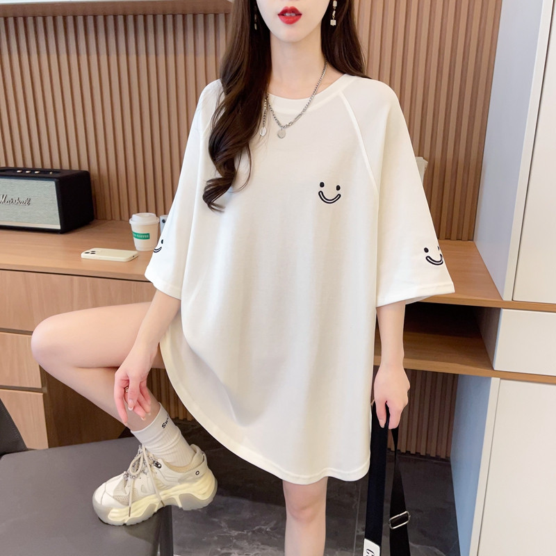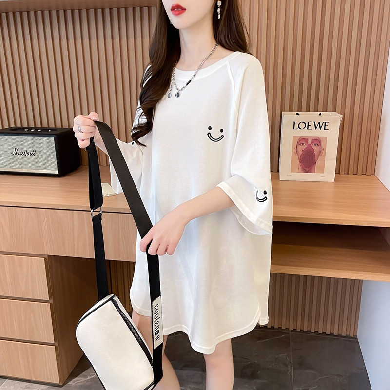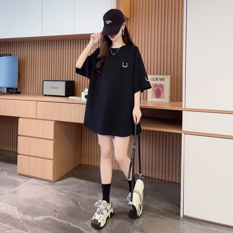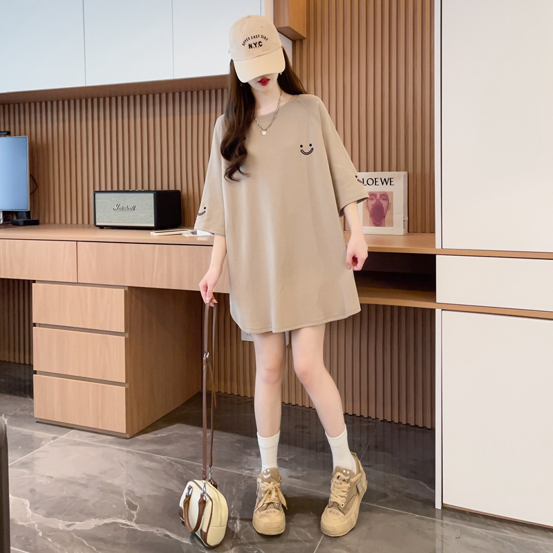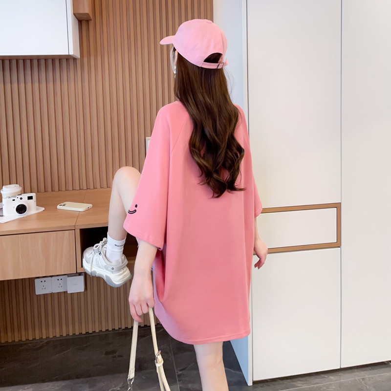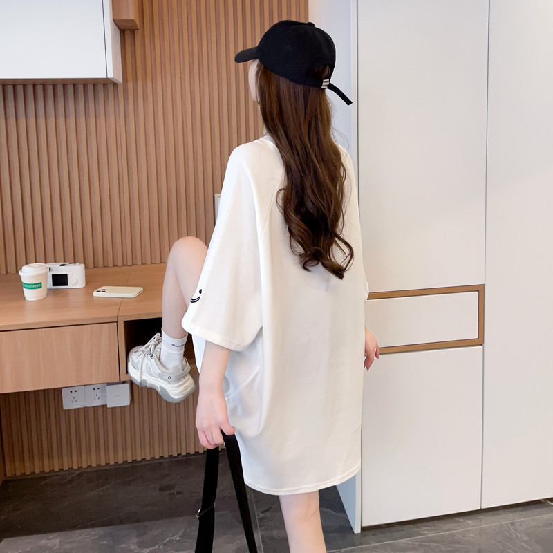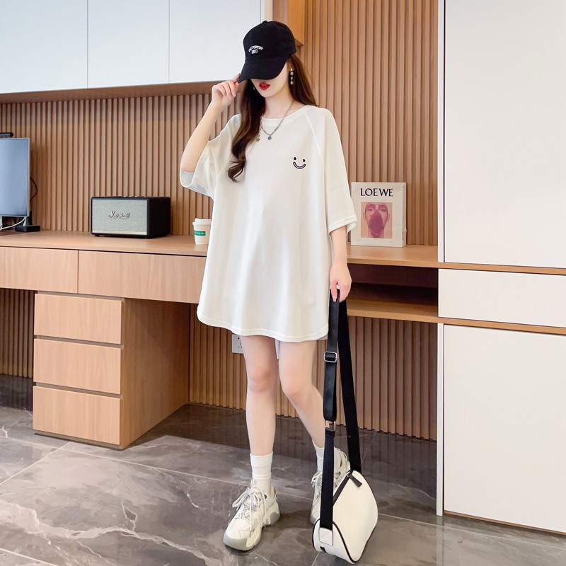 Bông dài phiên bản của phụ nữ mang Thai bụng áo sơ mi ngắn tay nữ mùa hè thoải mái cao cấp đơn giản và thư giãn áo sơ mi nữ