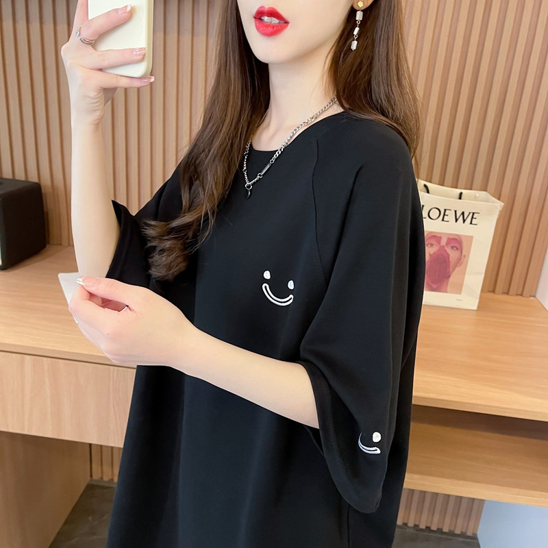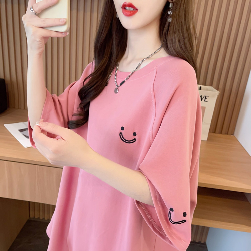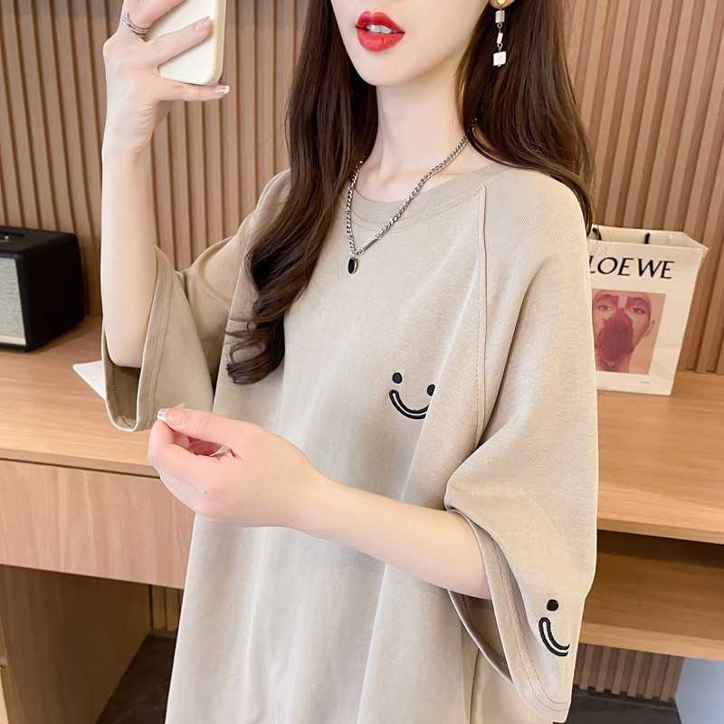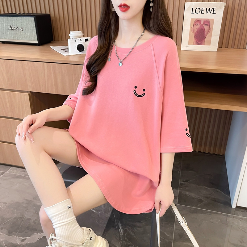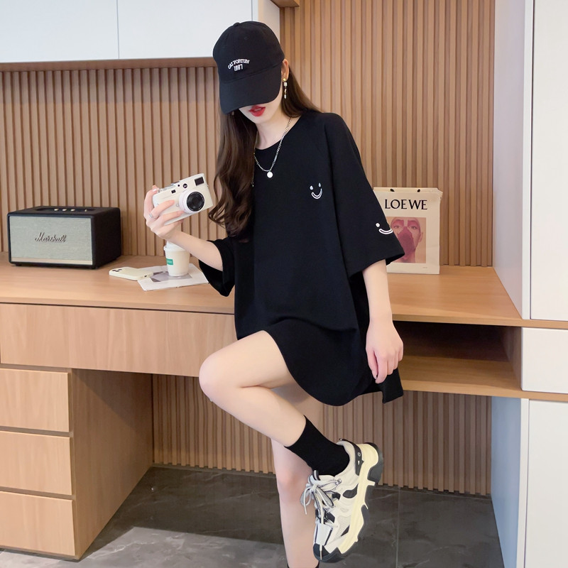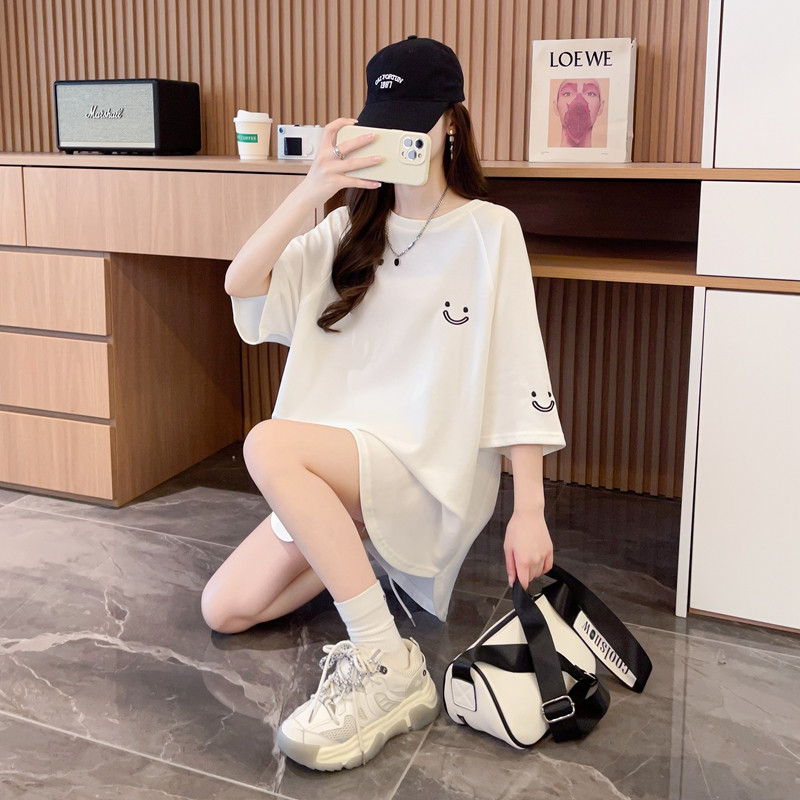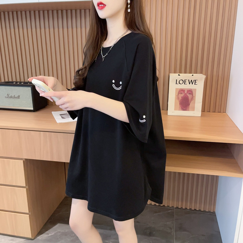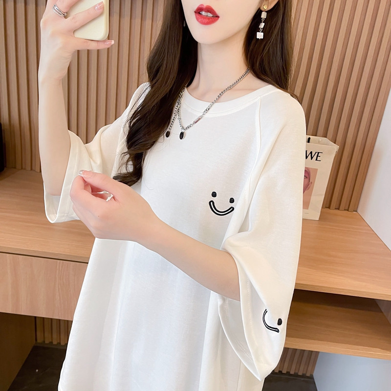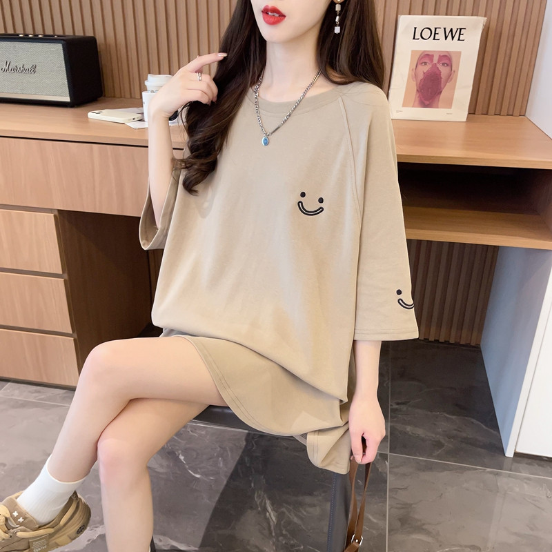 Bông dài phiên bản của phụ nữ mang Thai bụng áo sơ mi ngắn tay nữ mùa hè thoải mái cao cấp đơn giản và thư giãn áo sơ mi nữ