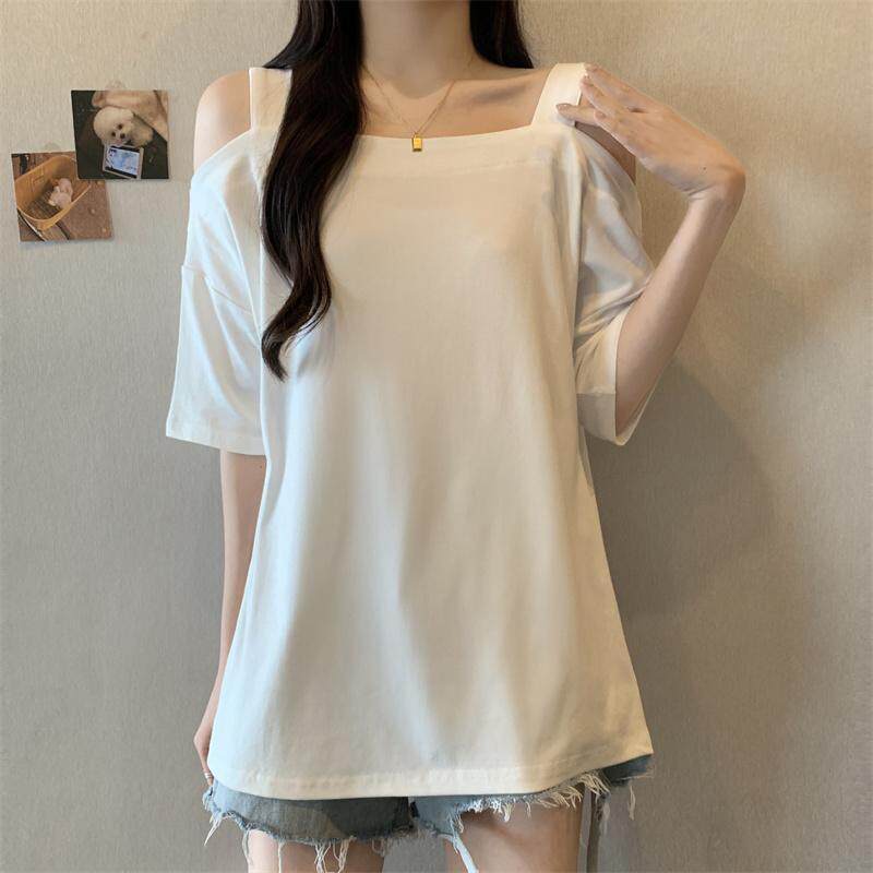 Mùa hè, 300 kg chất béo mm rộng, mỏng, áo sơ mi ngắn tay 240 hàn quốc đeo một từ vai dây đeo áo khoác 200 phụ nữ