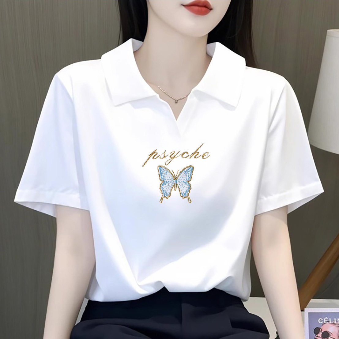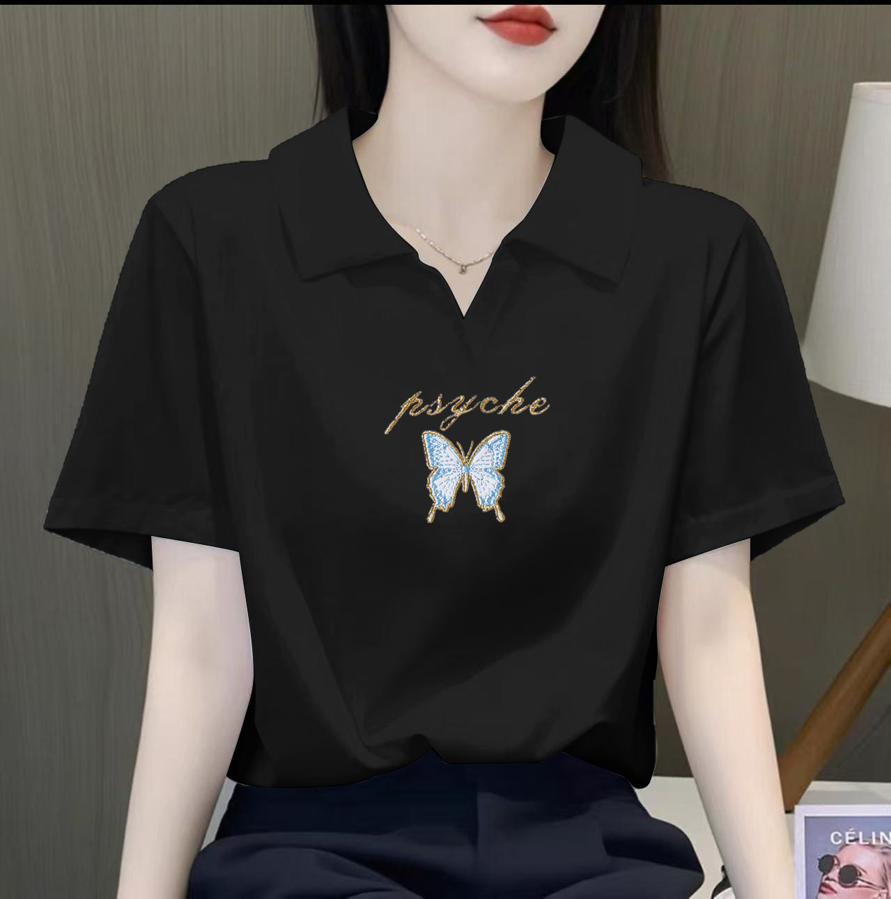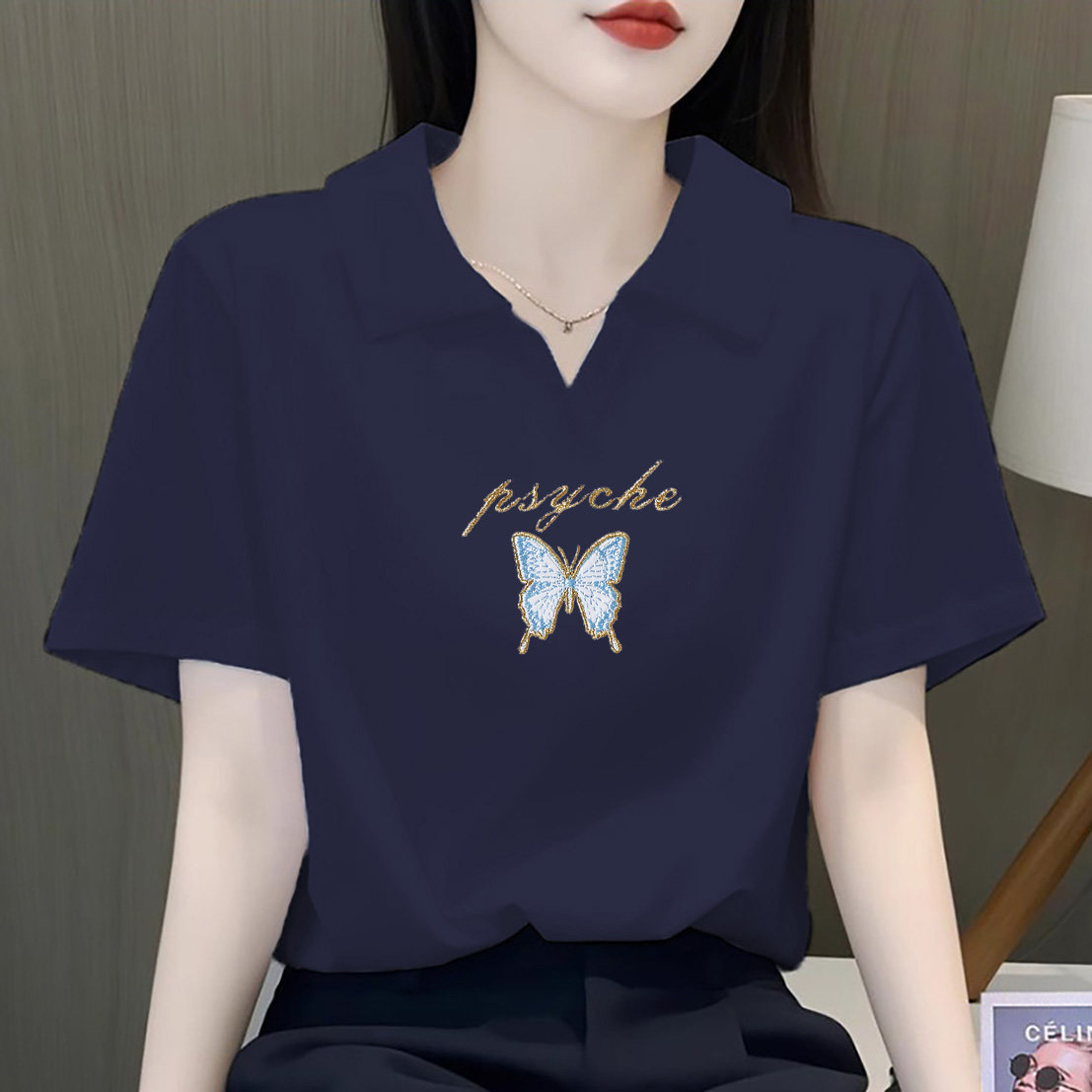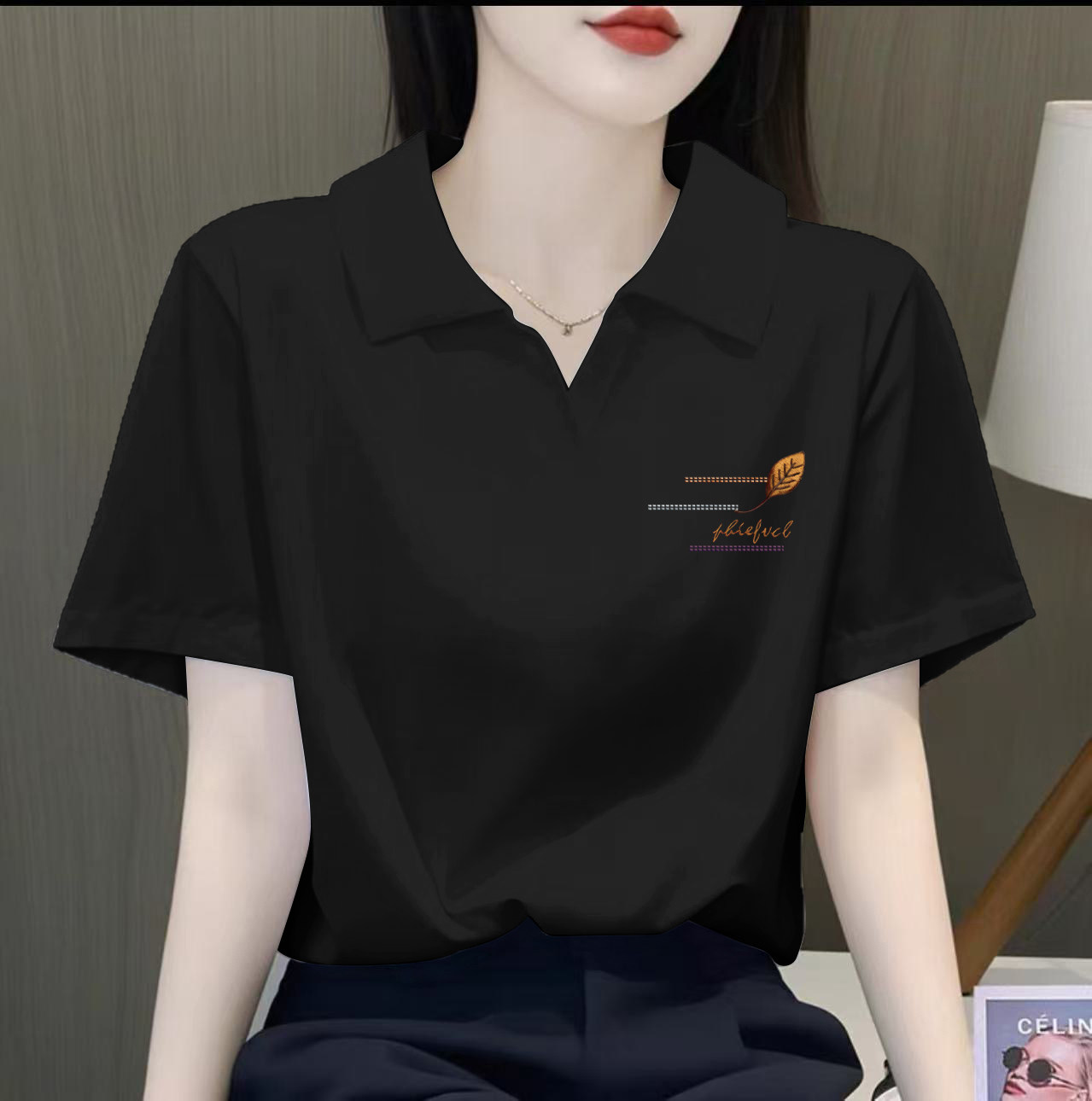 Cửa hàng giảm giá 100% bông nữ mùa hè ngắn tay áo thun POLO cổ áo thun quần áo quần áo cỡ lớn mặc áo sơ mi