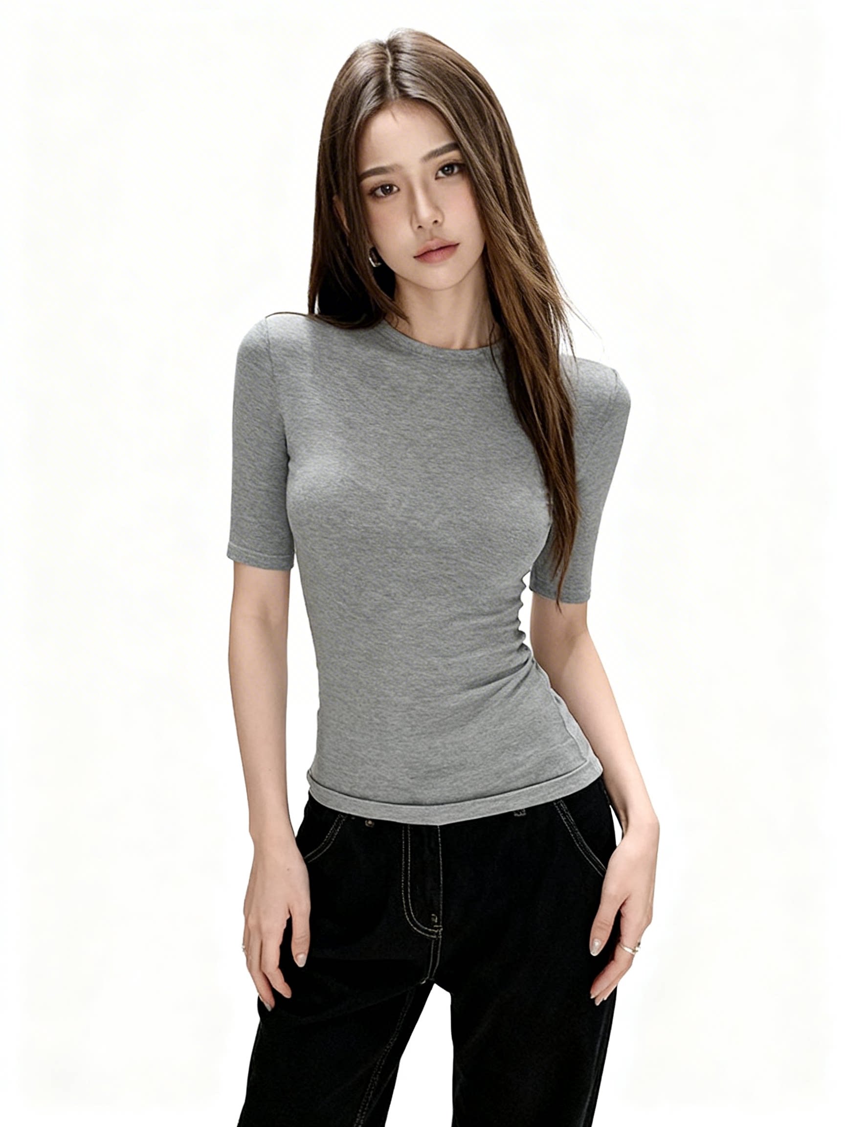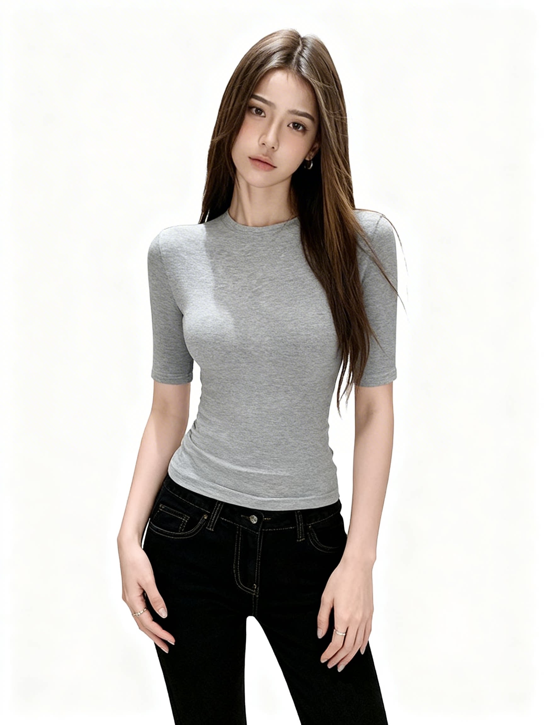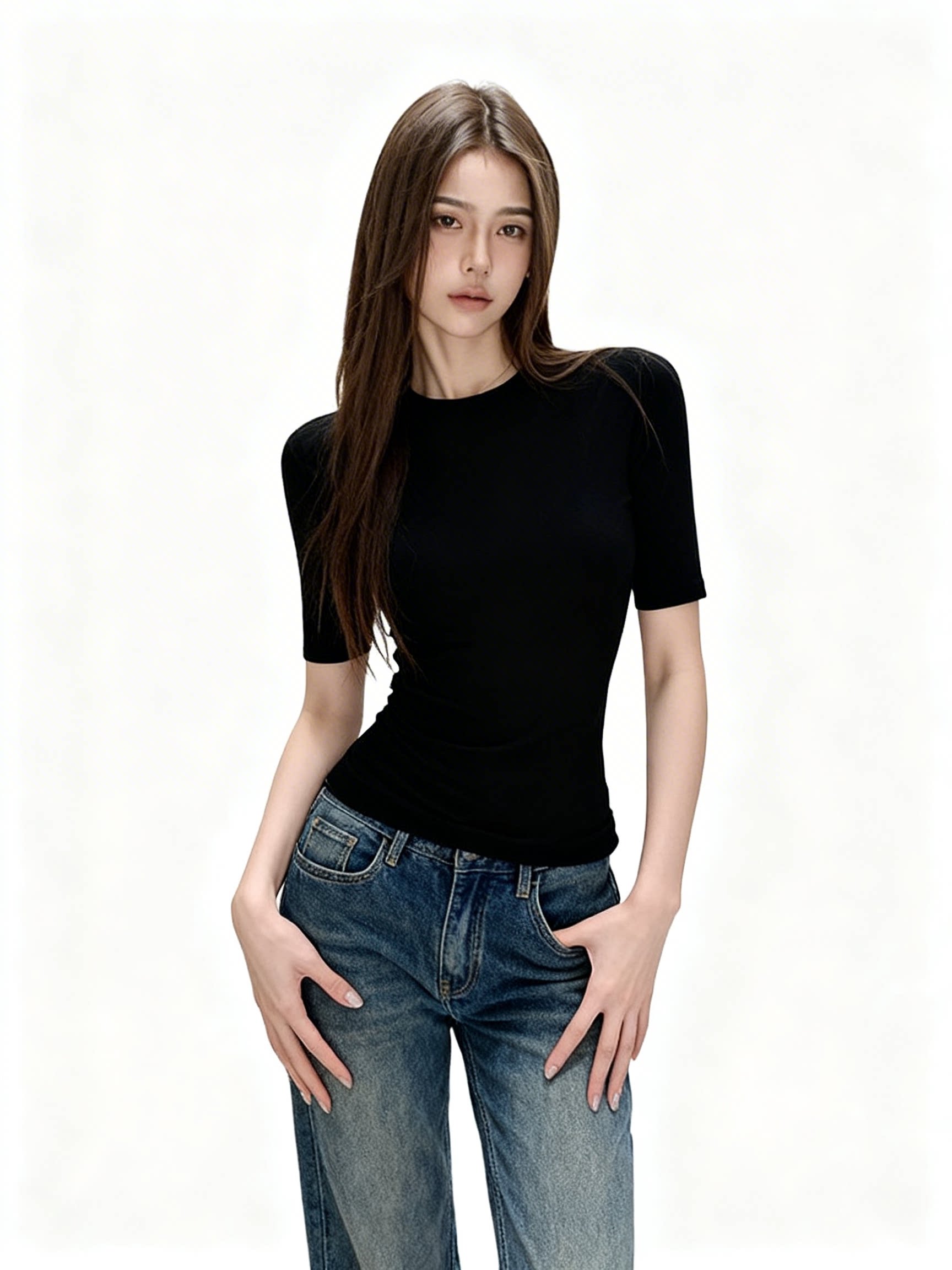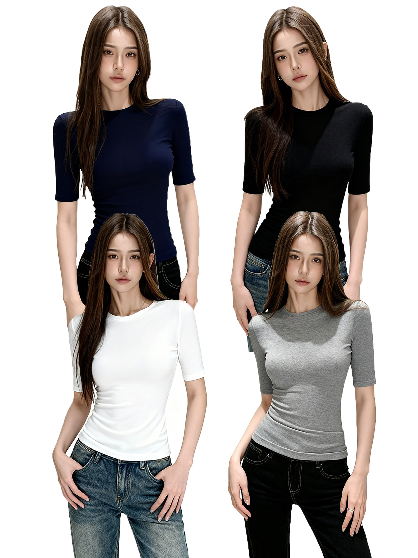 Hellonana màu đen vòng cổ cổ áo ngắn tay áo ngắn tay áo ngắn mùa hè ngắn tay áo