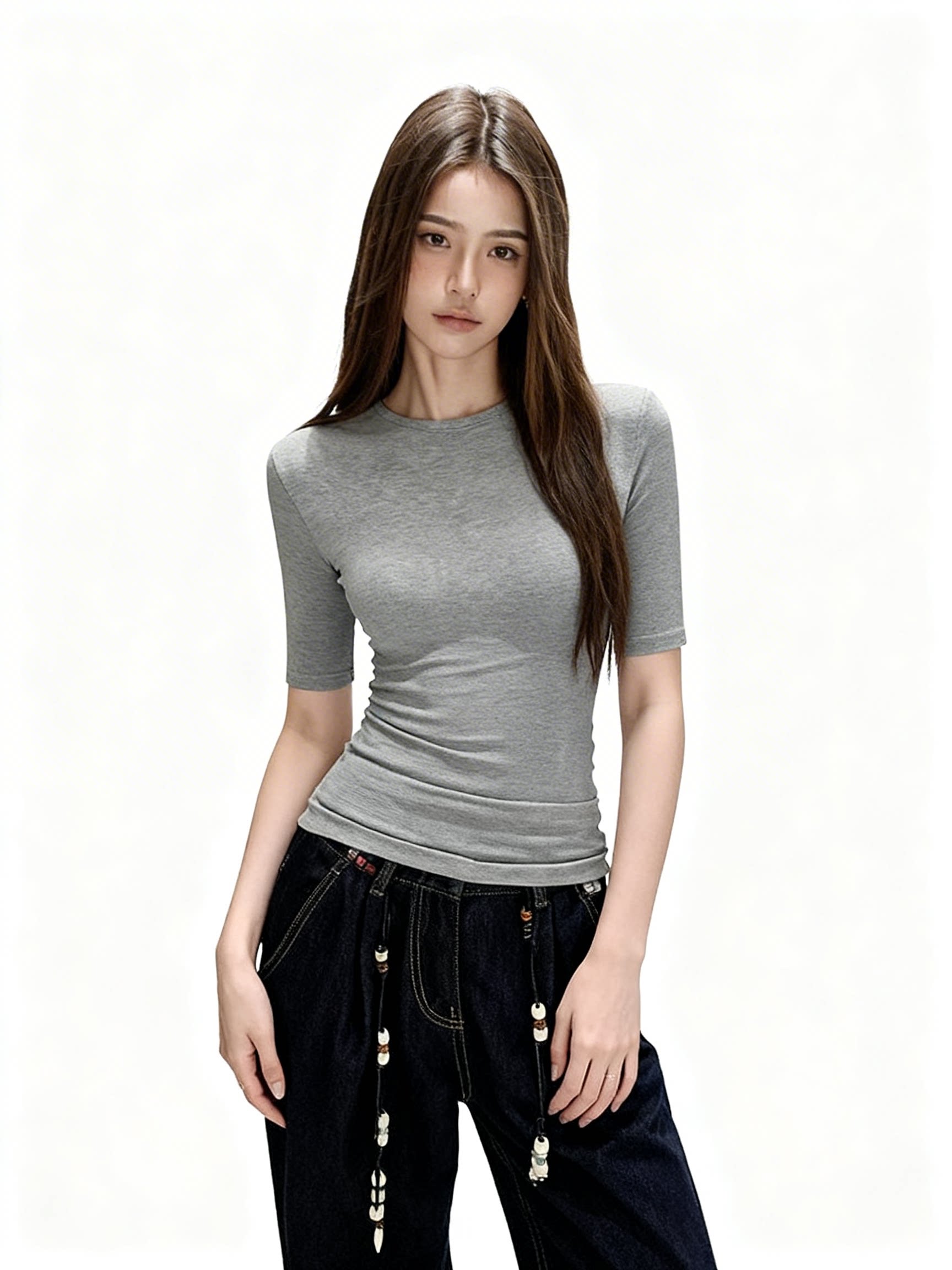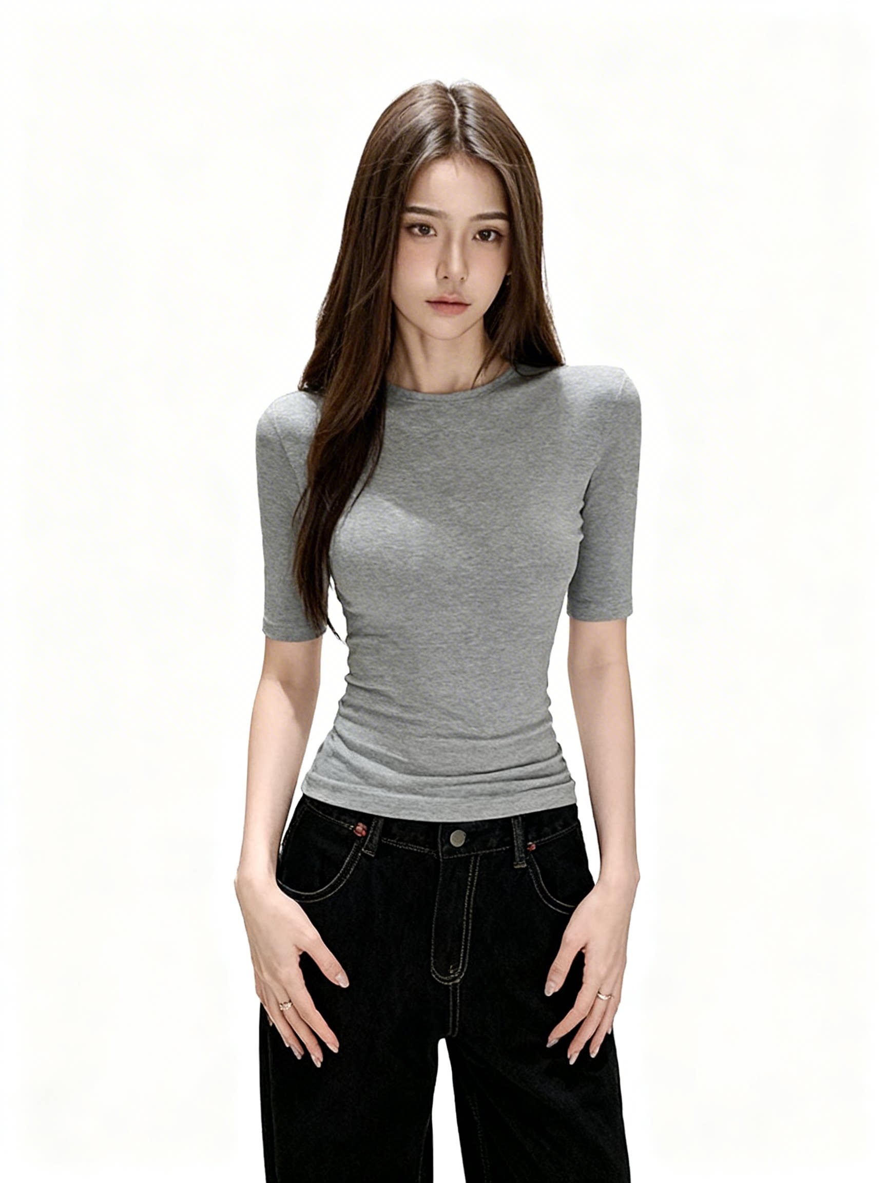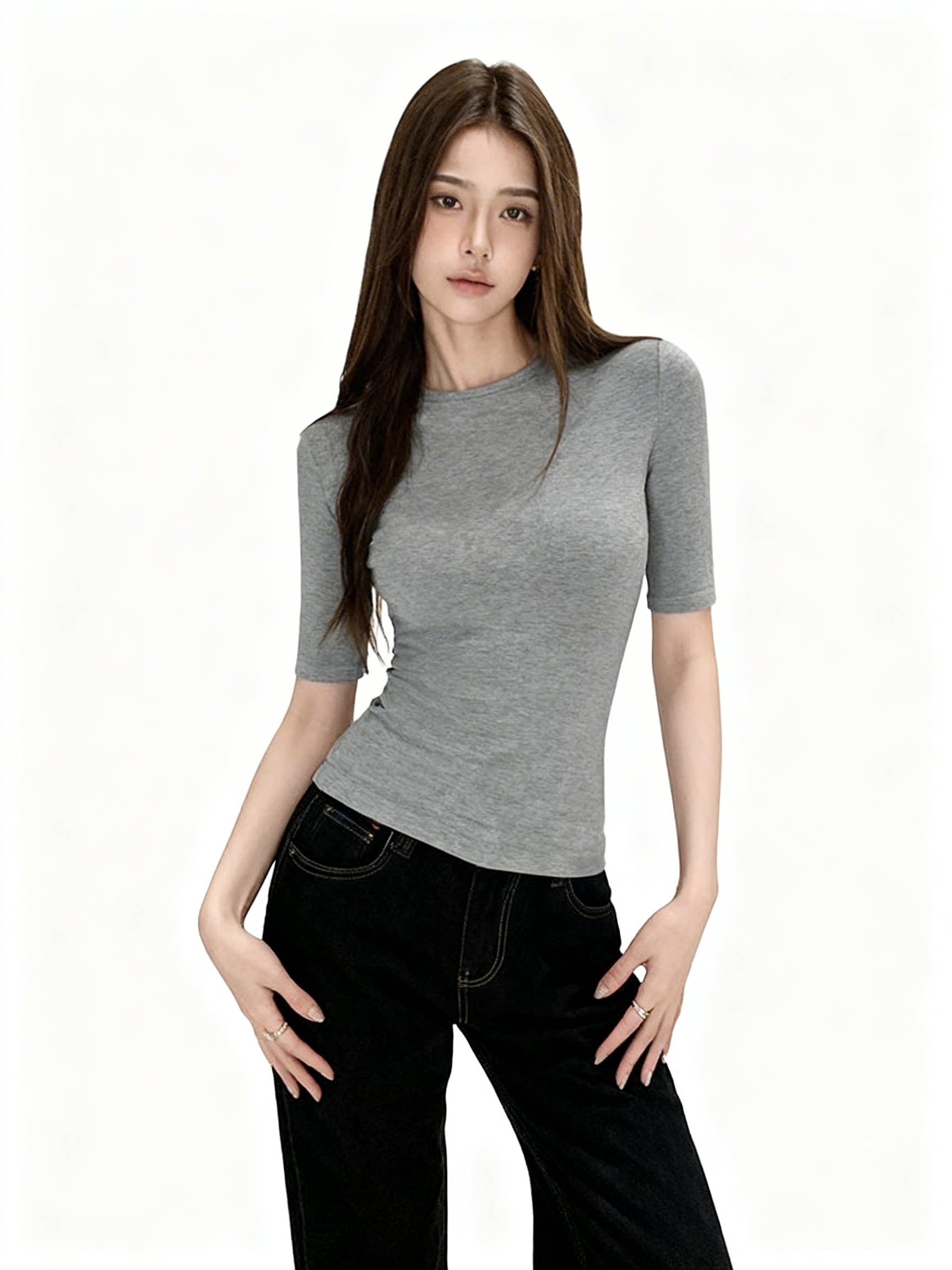 Hellonana màu đen vòng cổ cổ áo ngắn tay áo ngắn tay áo ngắn mùa hè ngắn tay áo