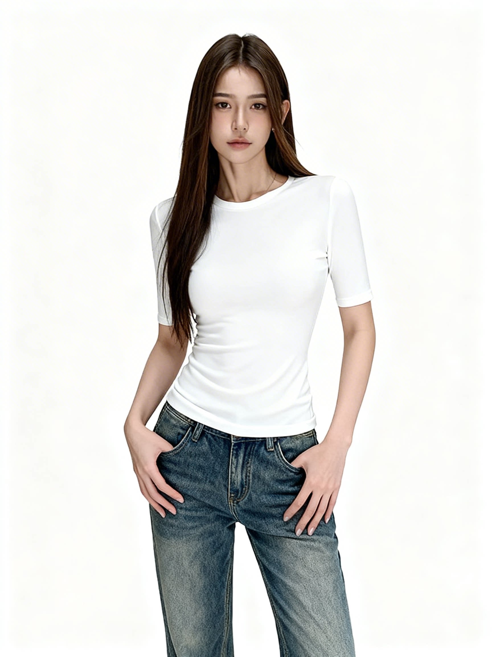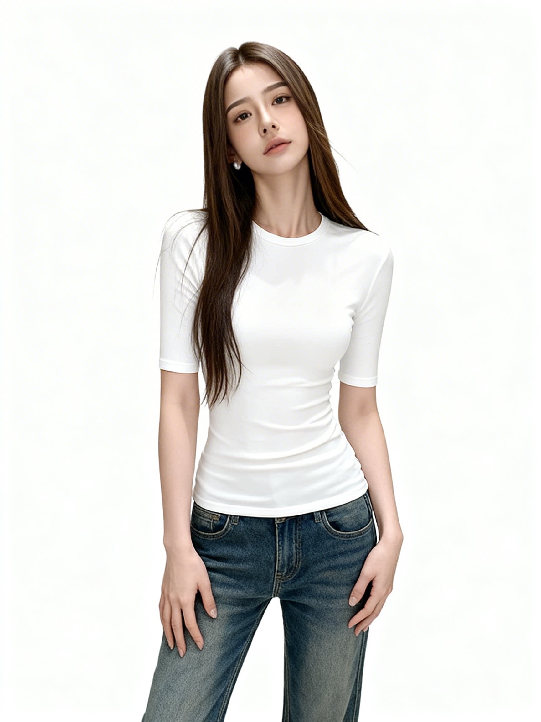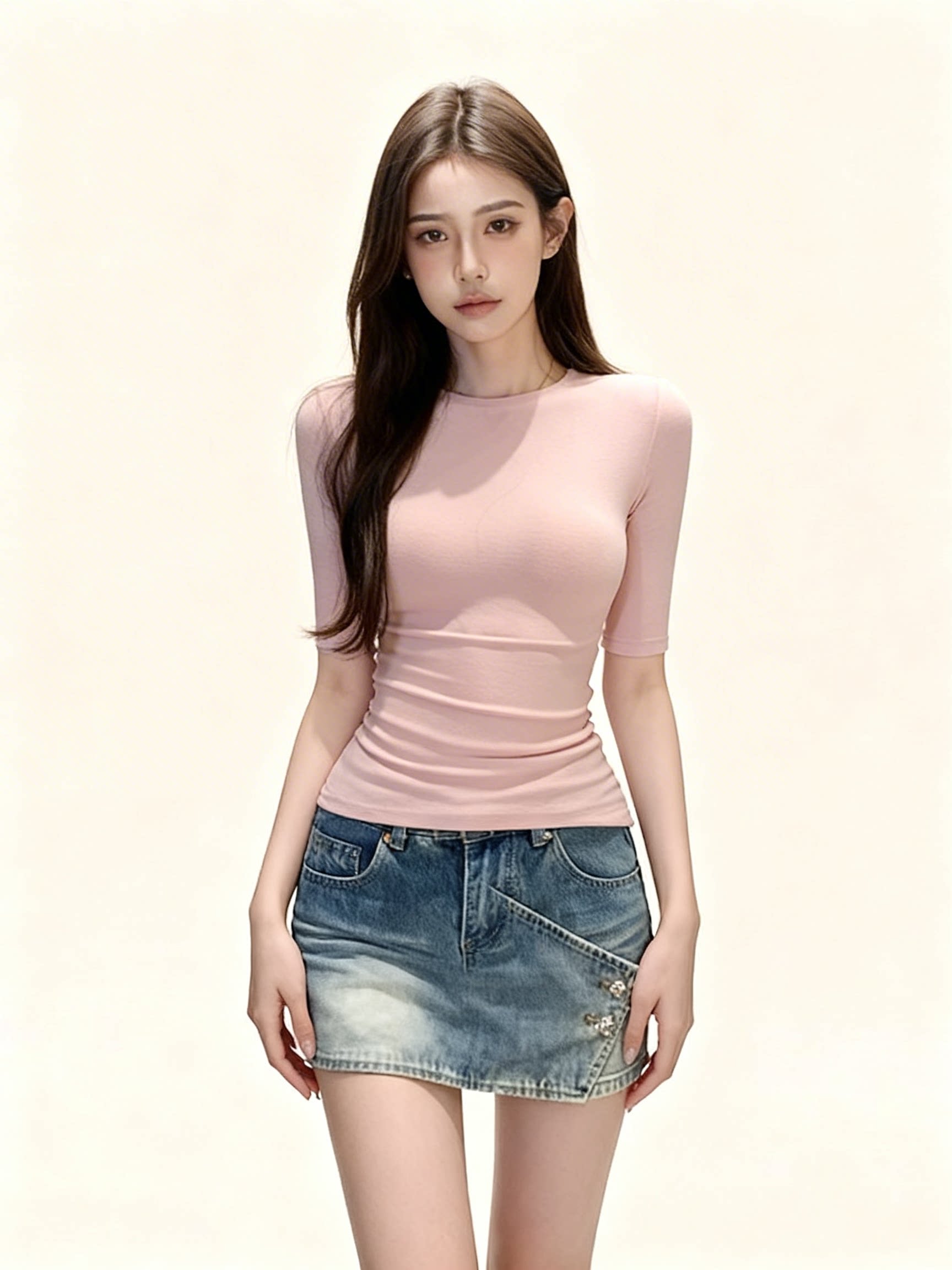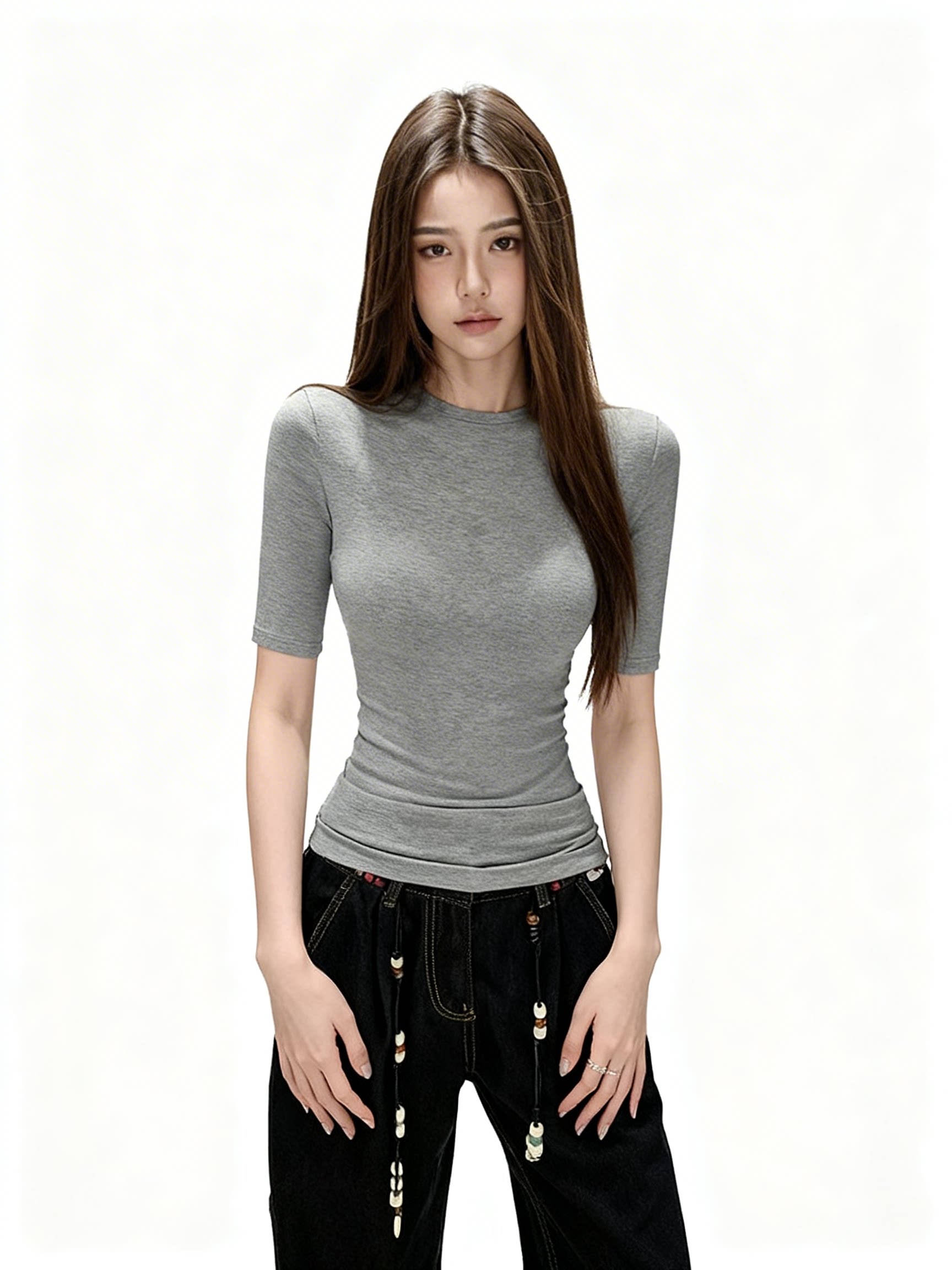 Hellonana màu đen vòng cổ cổ áo ngắn tay áo ngắn tay áo ngắn mùa hè ngắn tay áo