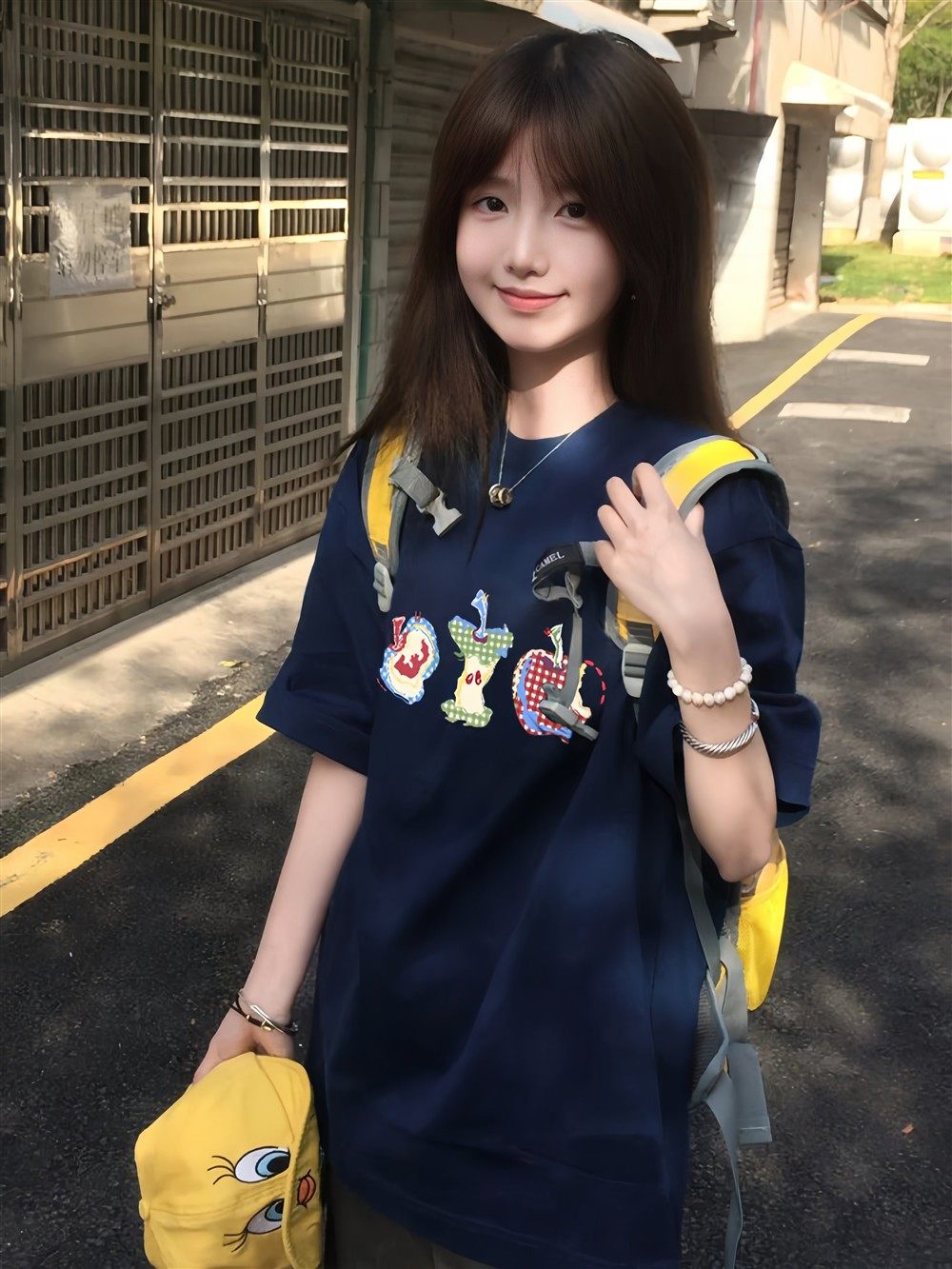Áo thun ngắn tay kiểu Mỹ Girl Big Boy 2026 Mùa hè mới Trường trung học cơ sở Học sinh trung học phổ thông vai rộng nửa tay áo trên quần áo