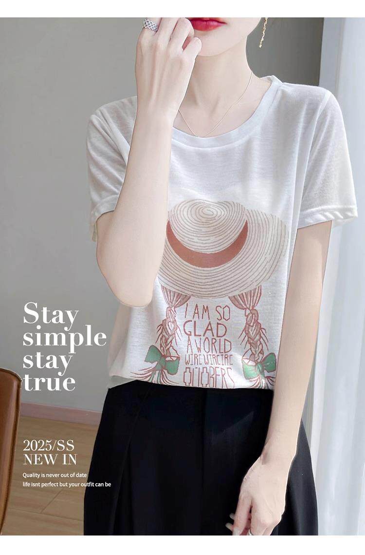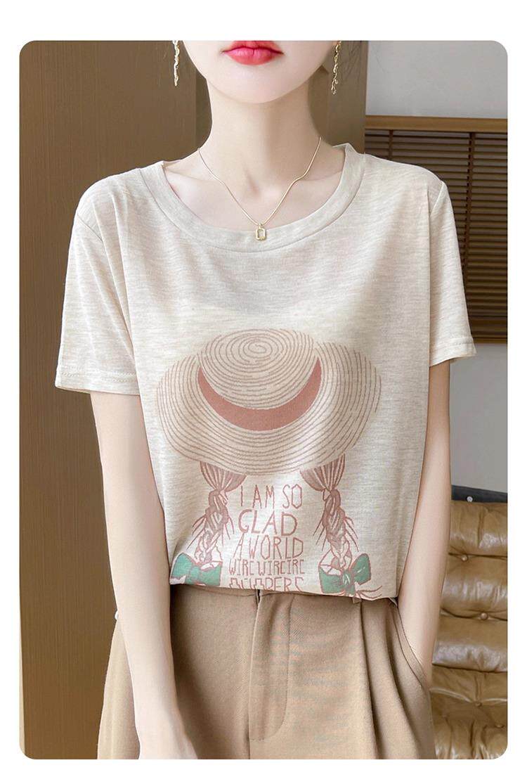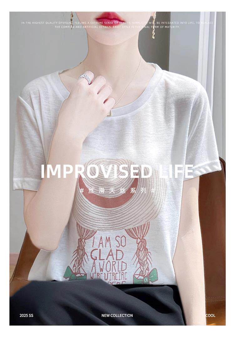 "Xử lý" tian si ngắn tay áo áo sơ mi nữ 25 mùa hè mới in băng lớn cỡ nửa tay áo mỏng áo khoác