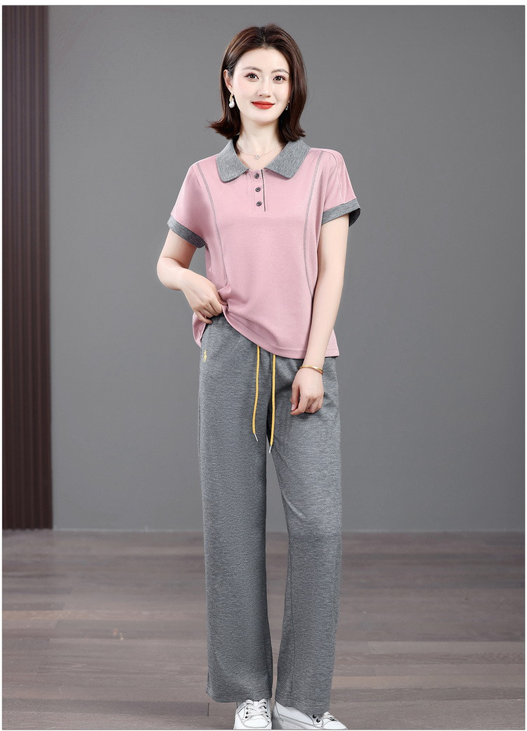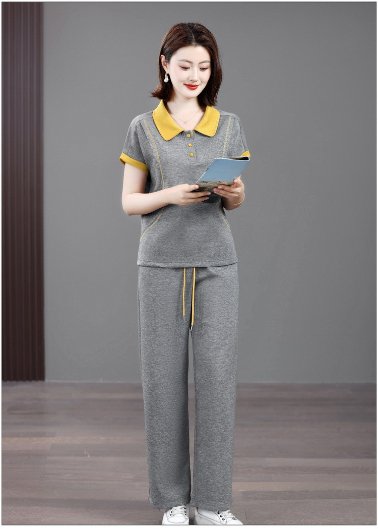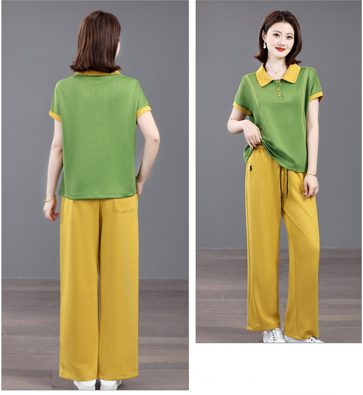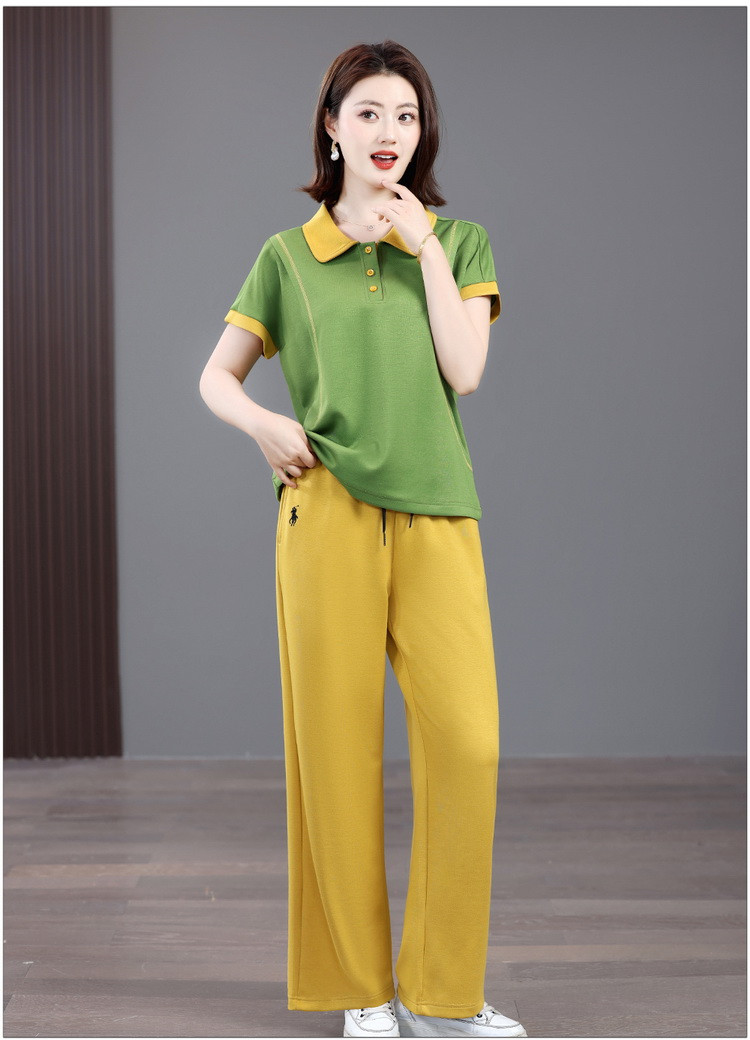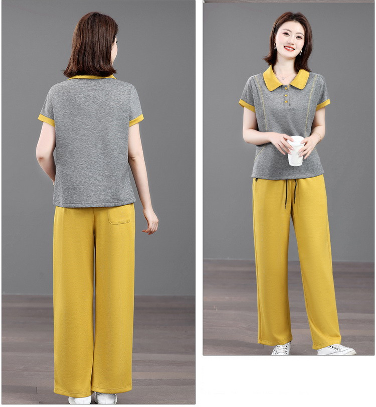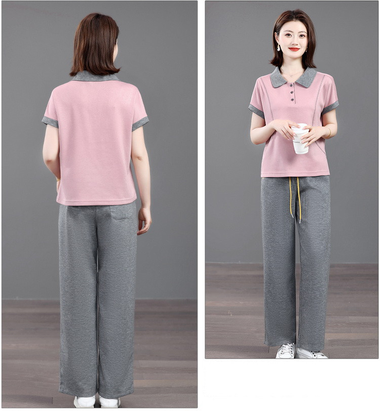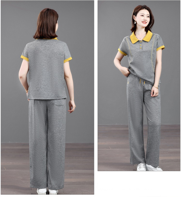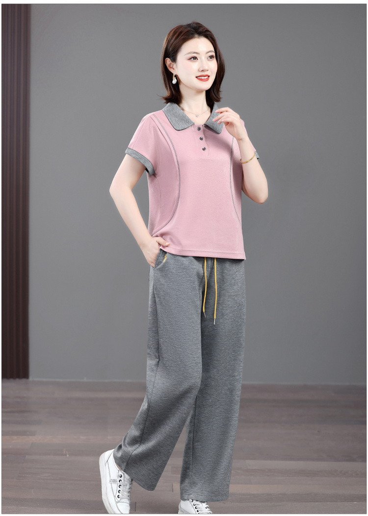 Mùa hè mẹ giải trí tập thể dục năm 2025 mới mùa hè người cao tuổi áo thun ngắn tay mùa hè mỏng hai mảnh