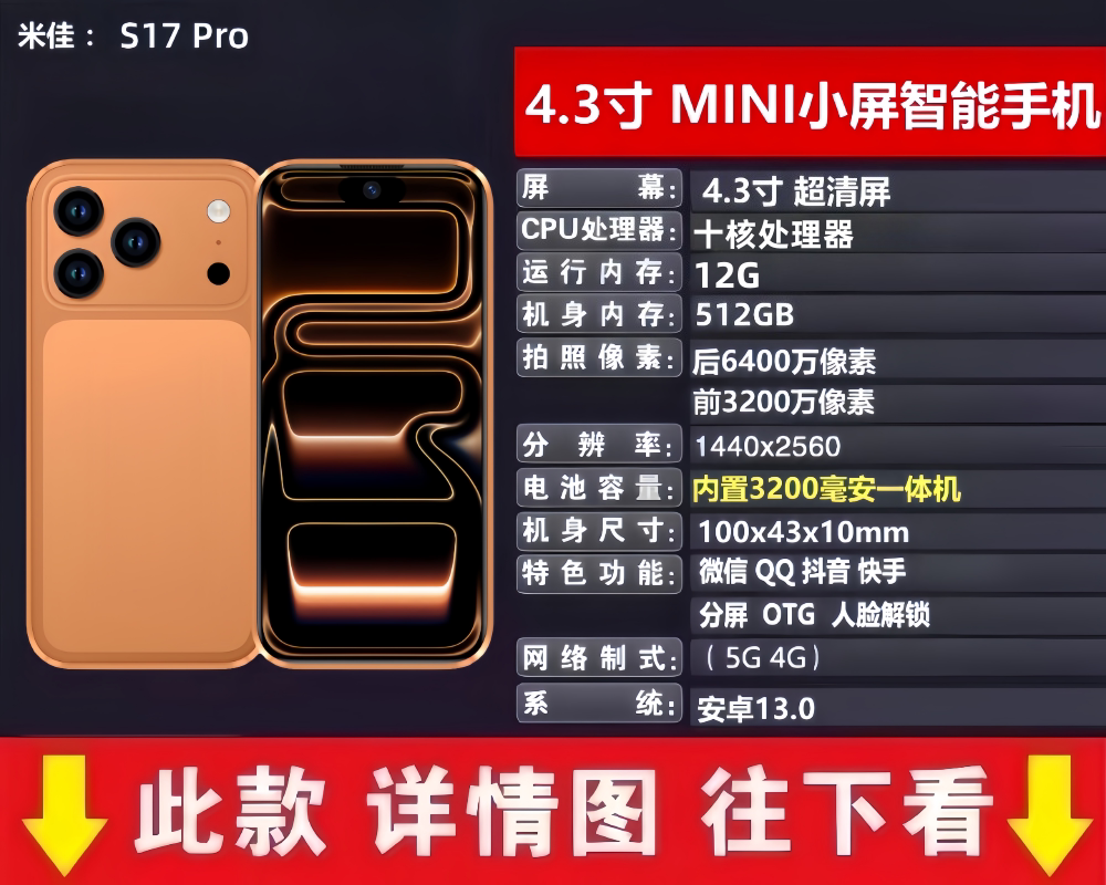 Bản gốc Ngân hàng Trung Quốc chính hãng không kích hoạt màn hình nhỏ 17mini mới 12+512G khuôn mặt thông minh đầy đủ điện thoại di động 5G Netcom