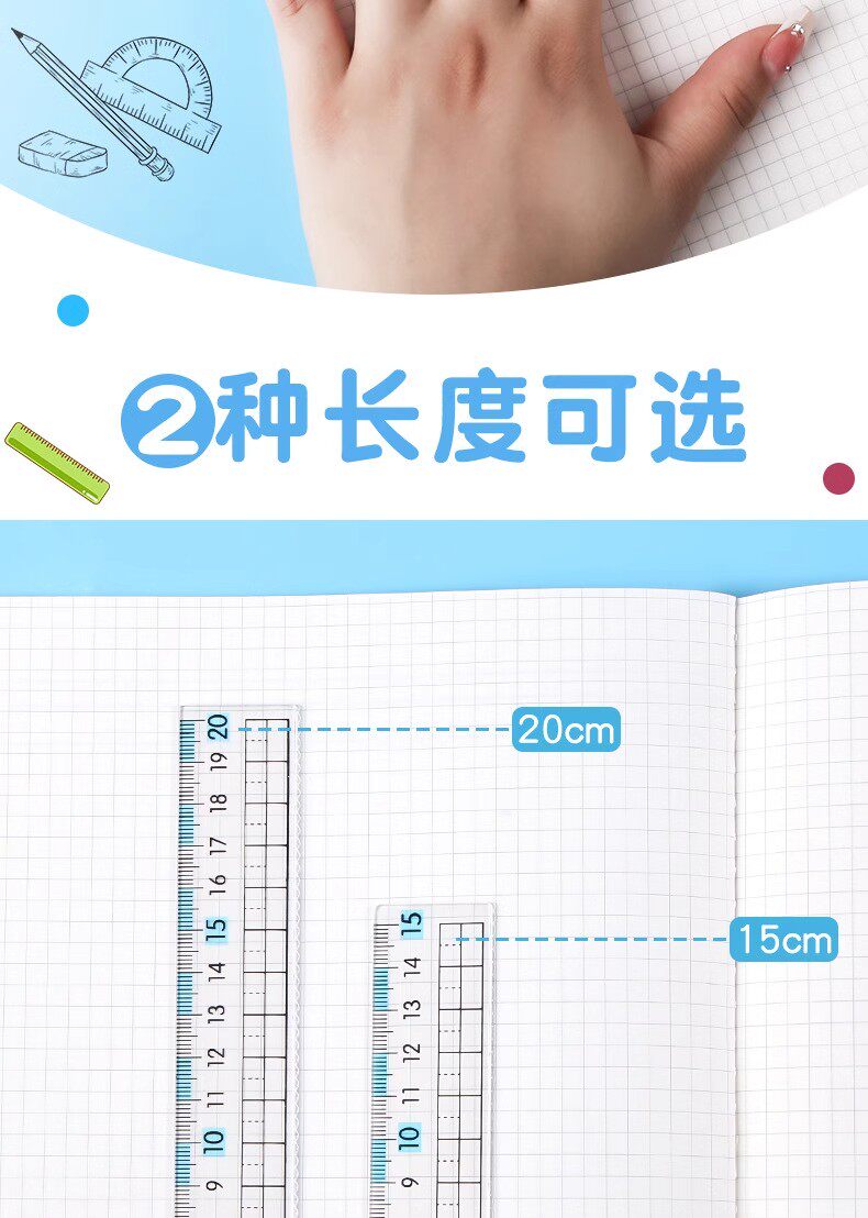 Thước đo chống cận thị với sóng thẳng học sinh 15 cm văn phòng phẩm 20cm trong suốt thước kẻ bản đồ