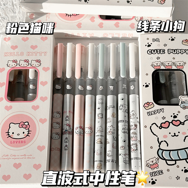 Hoạt hình dễ thương cao ngoại hình cấp độ ins trực tiếp nước ballpoint bút học sinh tốc độ 0.5 bàn chải bút màu đen