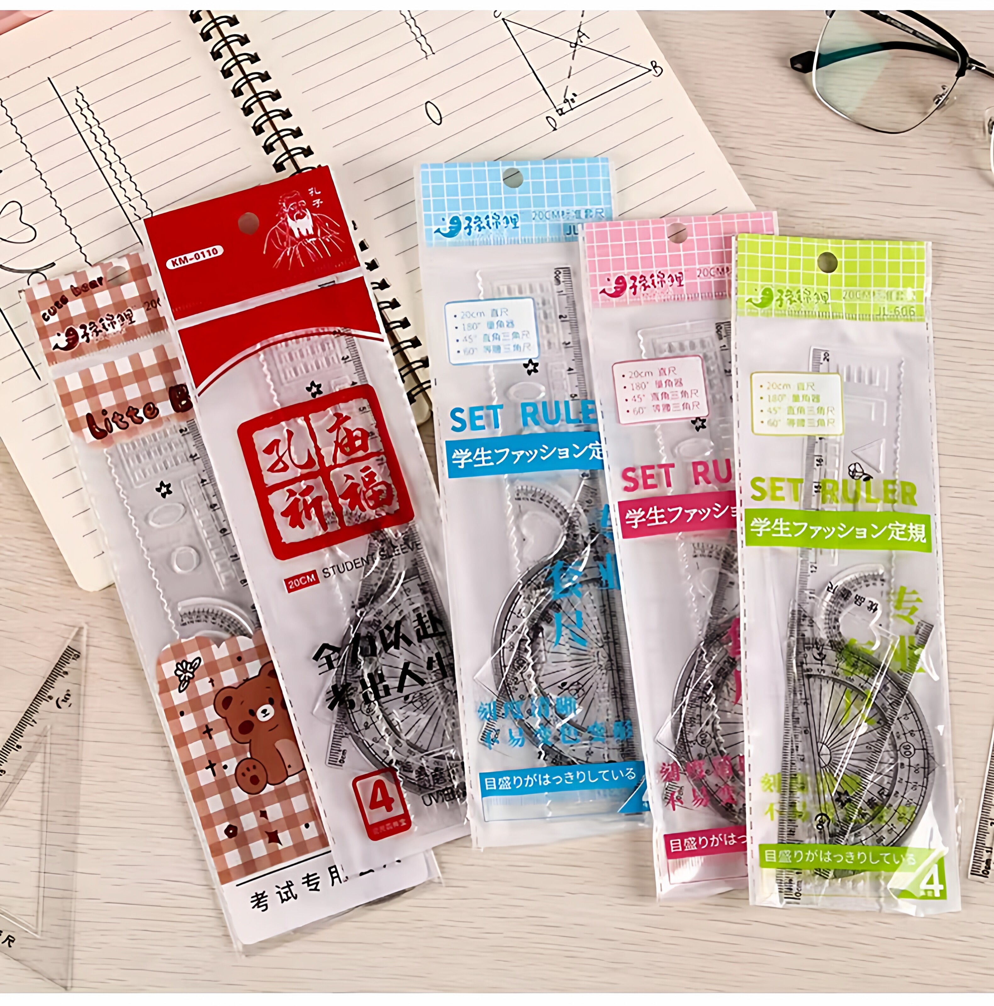Học sinh sử dụng một bộ thước hình tam giác trong suốt trọn bộ thước vuông bán buôn thiết lập bốn mảnh của các giải thưởng trường học