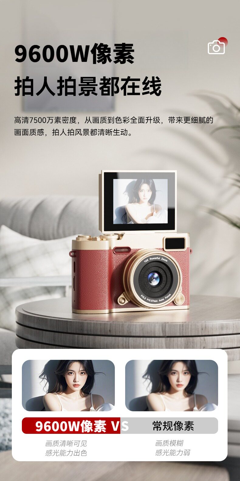 Hd 9600w máy ảnh có thể chụp tự động bởi CCD trước và sau máy ảnh kỹ thuật số tự họa quà tặng sinh viên