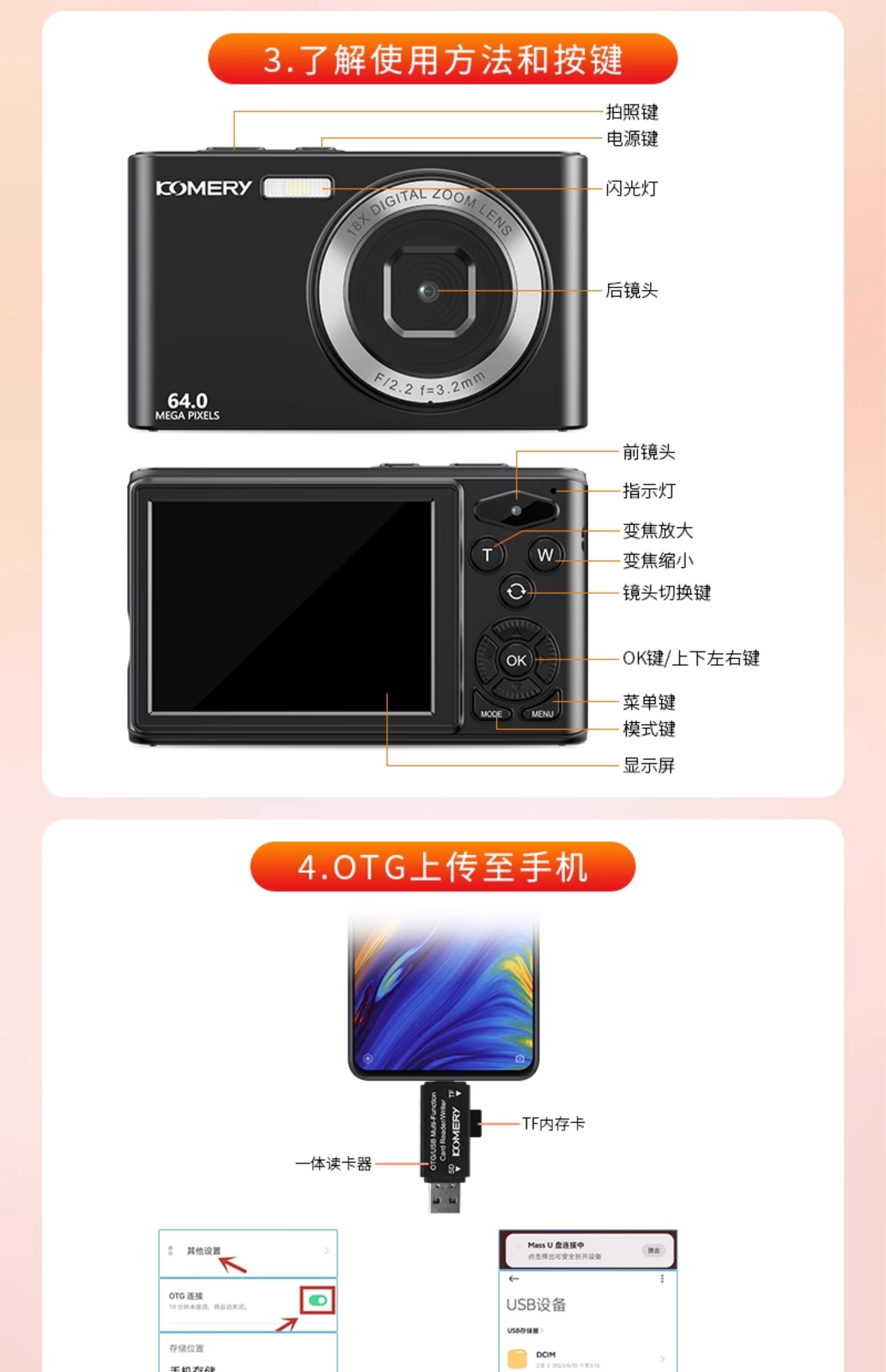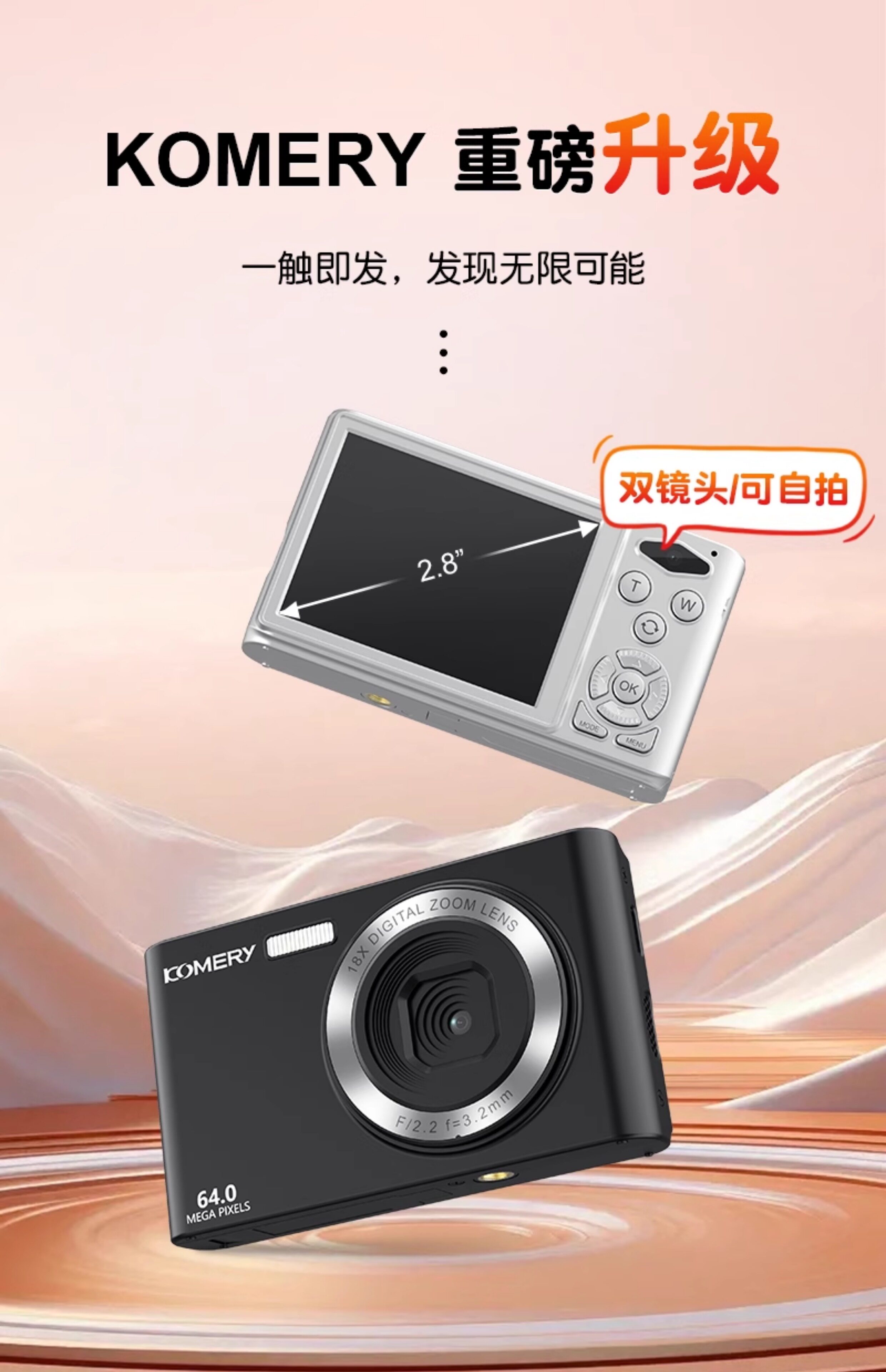 KOMERY C6A 64-megapixel dual camera kỹ thuật số hd học sinh thẻ máy tính một phím tự họa