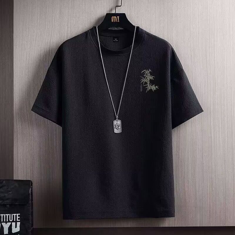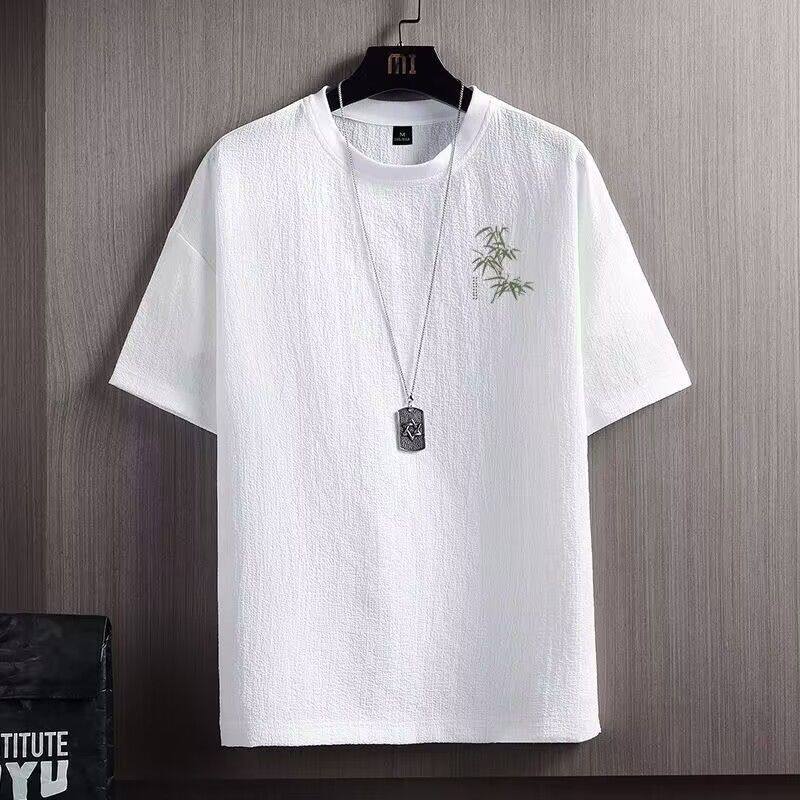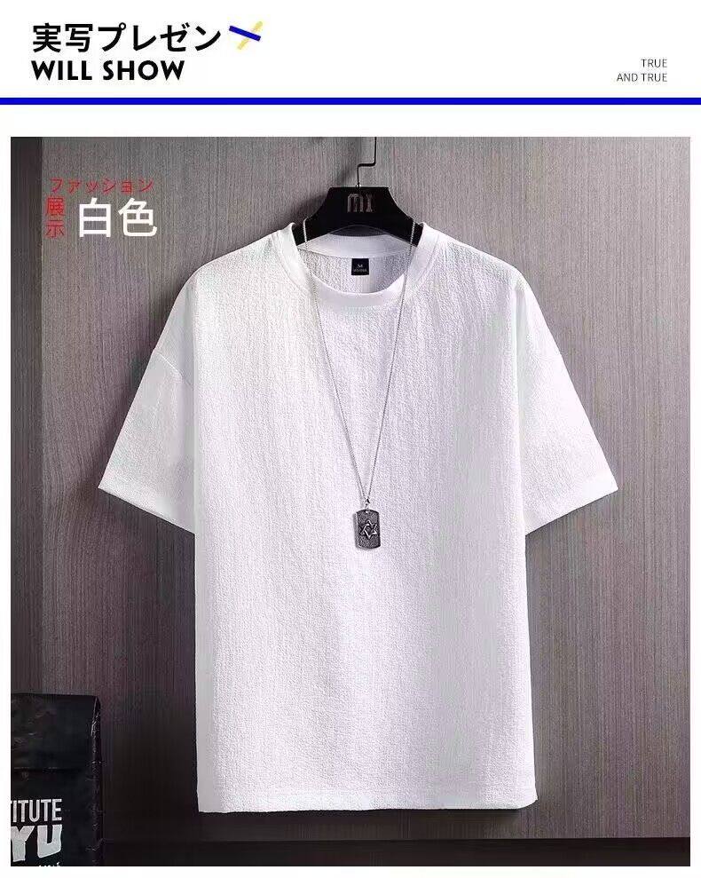 Linen Ice Silk 2024 mùa hè mới mỏng ngắn tay áo t-shirt cho nam giới Triều thương hiệu lỏng lẻo nửa tay áo nam bông vải trên quần áo