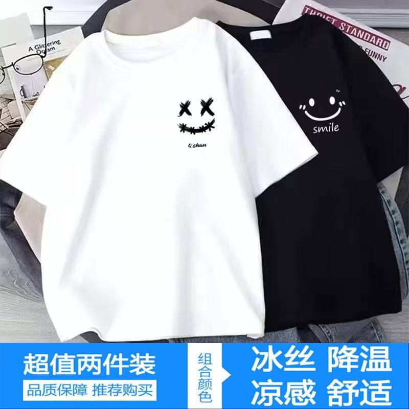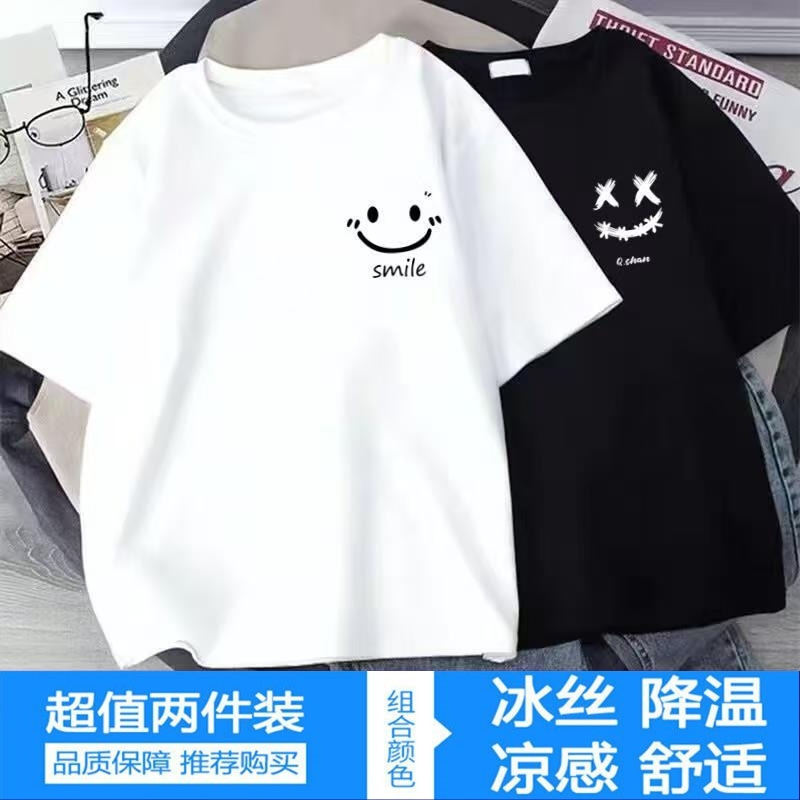 Mùa hè mới trường học sinh áo sơ mi tay ngắn cổ rộng năm phút và một nửa tay áo lạnh hàn quốc xu hướng T-shirt