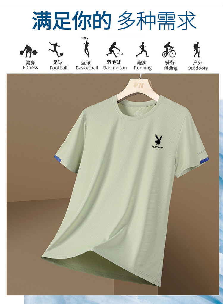 Playboy băng ngắn tay áo T-shirt người đàn ông mùa hè xu hướng giải trí thư giãn mùa hè mỏng mùa hè thể dục tốc độ quần áo khô