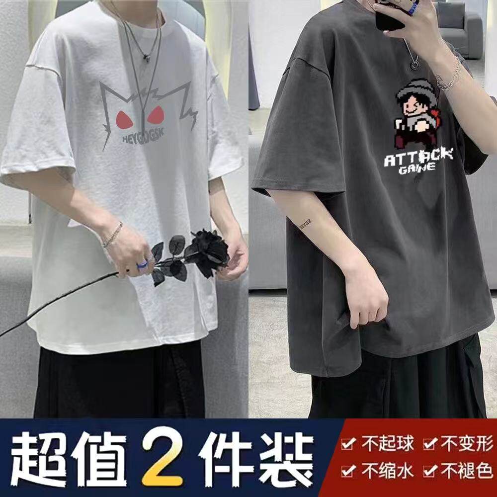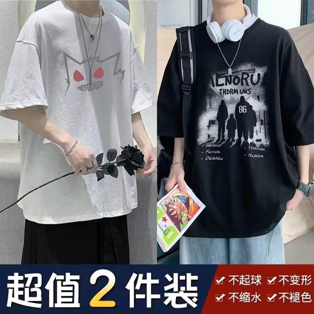 Ngắn tay người đàn ông mùa hè mới phong cách Tide thương hiệu năm tay áo T-Shirt lỏng lẻo phù hợp với chất béo cộng với kích thước nửa tay áo T-Shirt Top