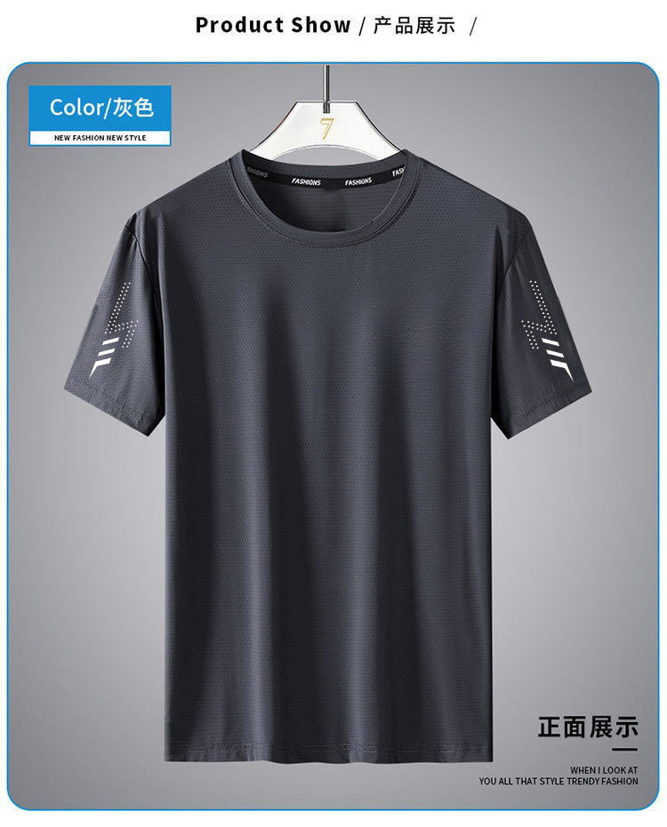Ice Silk T Shirt Men Tay áo ngắn 2025 Mới Mùa hè Thể thao Tốc độ khô thoáng khí nửa tay áo Man T Shirt lỏng lẻo trên quần áo