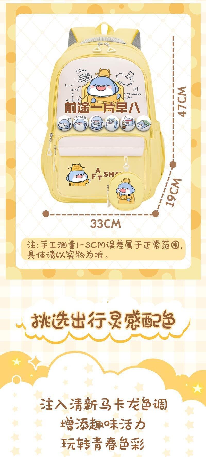 Cá mập mập xung quanh vai túi hoạt hình sinh viên đáng yêu túi túi khối lượng lớn để chống lại gánh nặng trường trung học và trường trung học ba lô mới