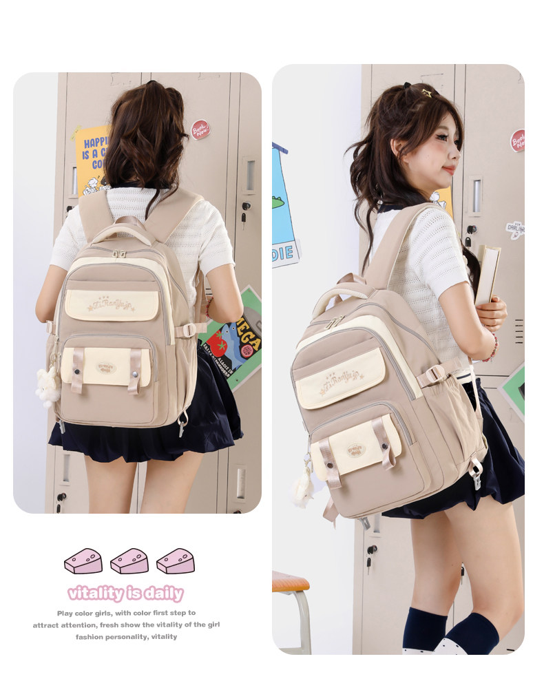 Túi học sinh nữ học sinh trung học công suất lớn học sinh trung học giảm cân cột sống túi xách siêu nhẹ mới