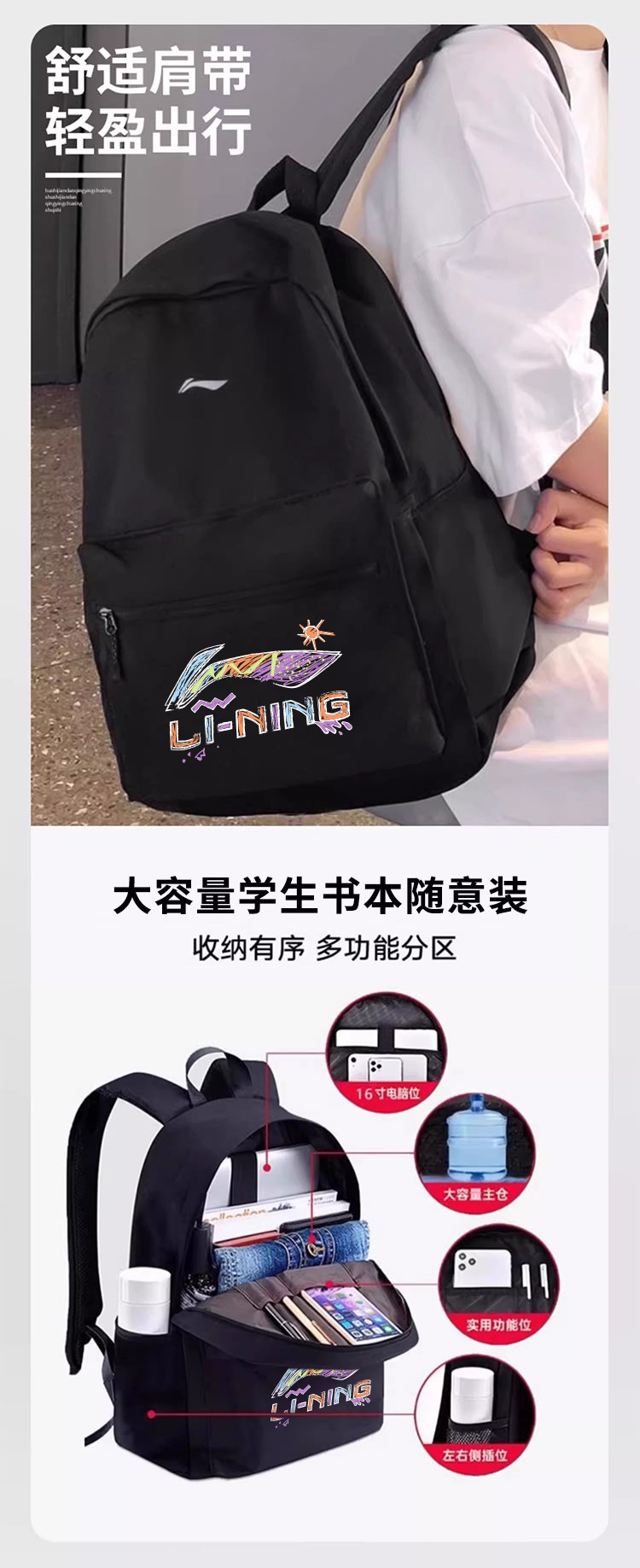 Li ning hai vai túi xách năm 2025 người đàn ông trung học trung học túi xách máy tính túi xách túi xách phụ nữ đi du lịch ngoài trời