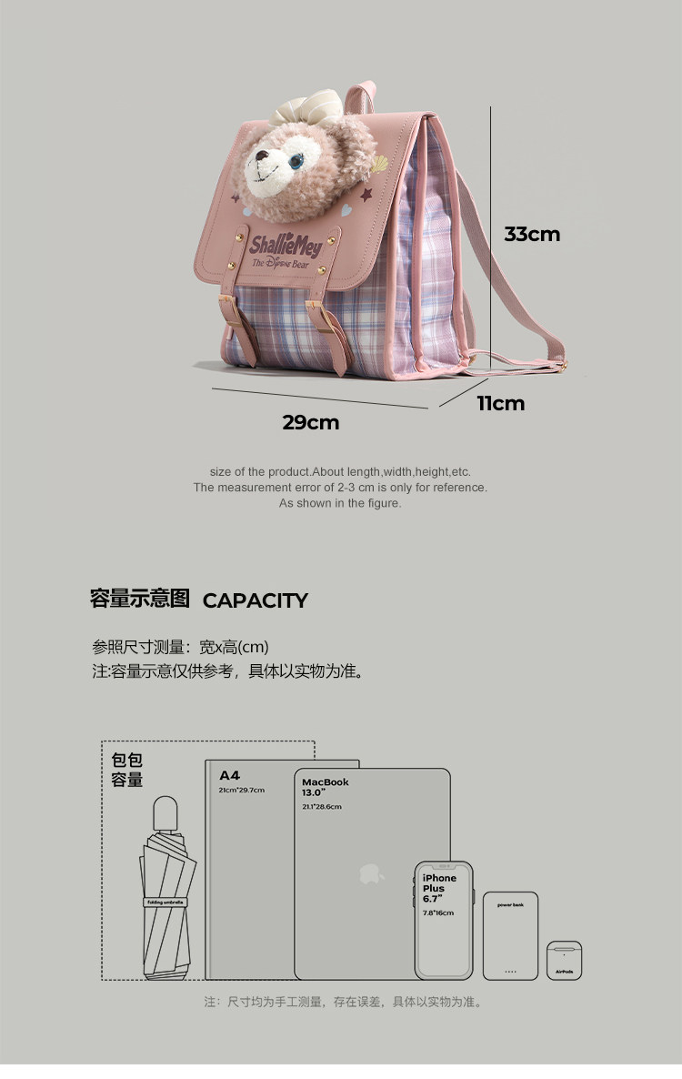 UR quà tặng ngày trẻ em sinh nhật màu hồng dễ thương vai túi 2025 mới túi xách trường trung học cơ sở nữ 10-12 tuổi ba lô