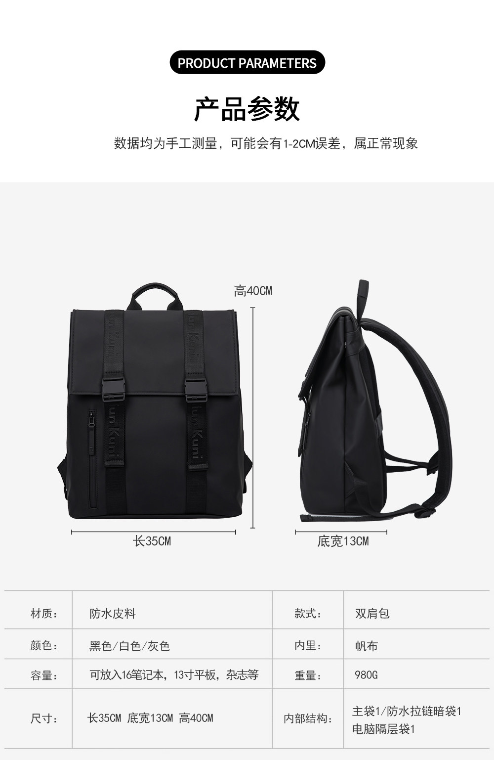 CailunKuni túi xách vai đàn ông làm việc lớn máy tính vai ba lô trường đại học trường đại học túi phụ nữ
