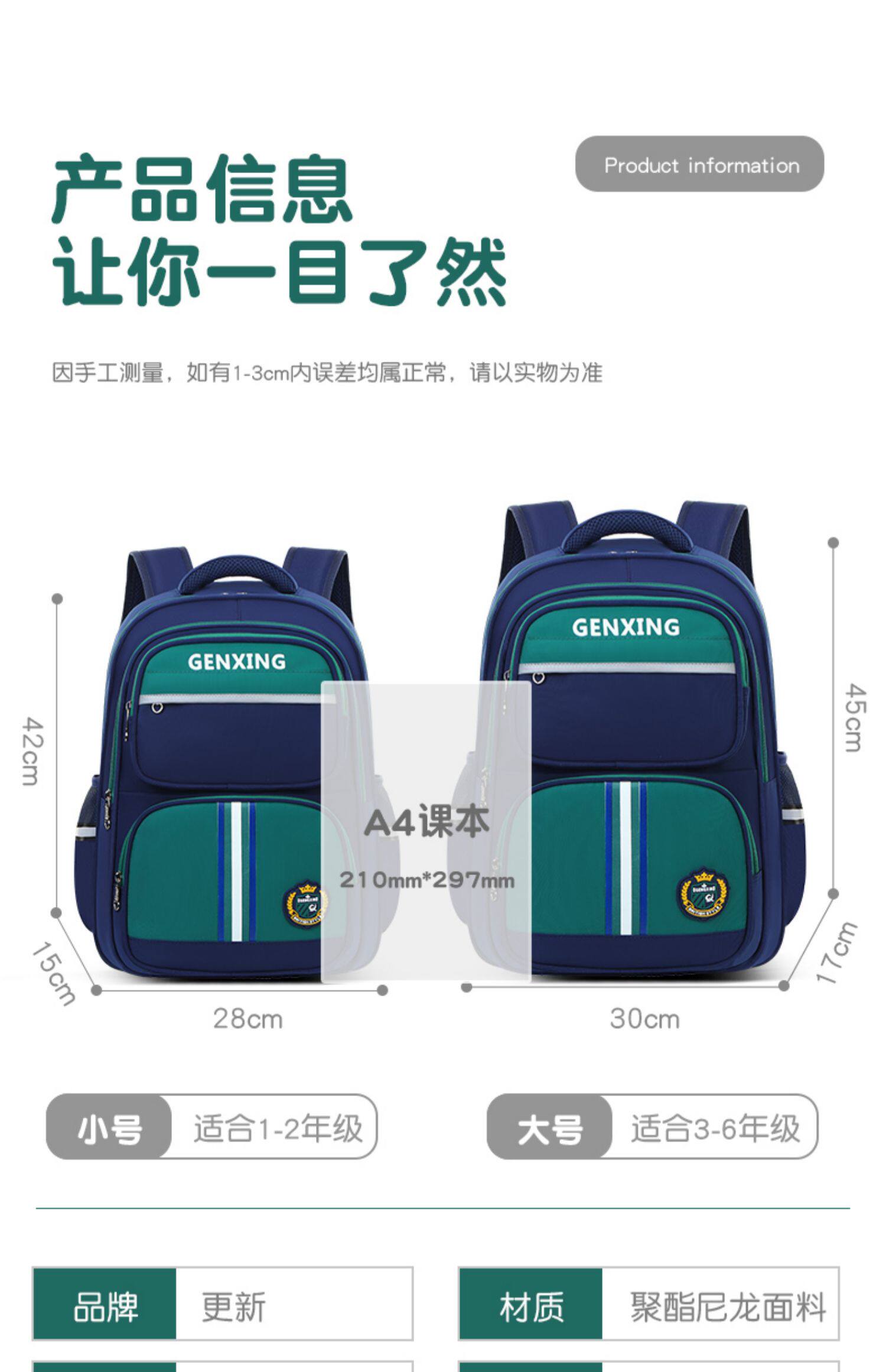 Túi trẻ em cho học sinh tiểu học Lớp 1,2,3 đến lớp 6 Bảo vệ cột sống giảm âm cho nam và nữ