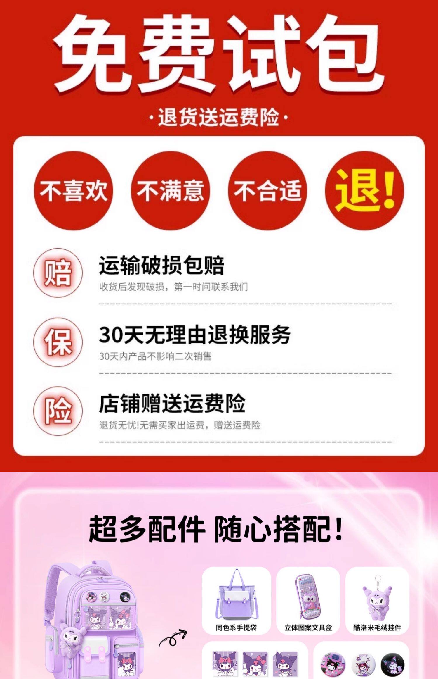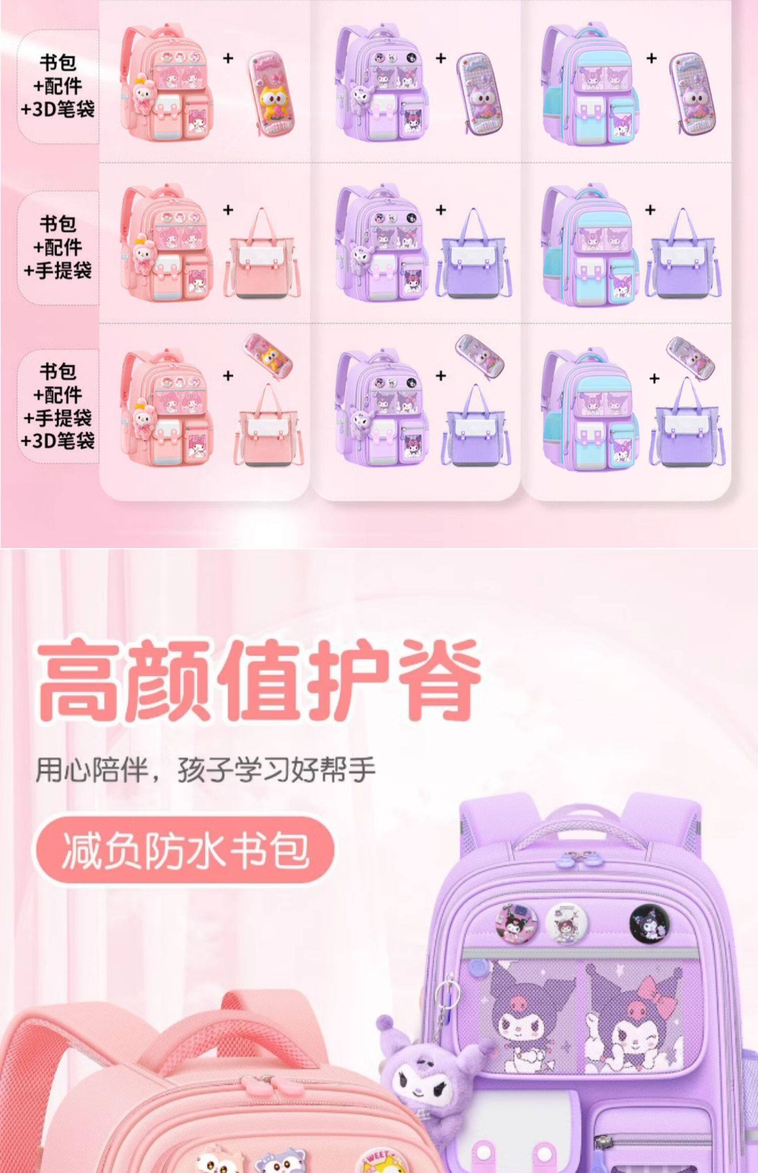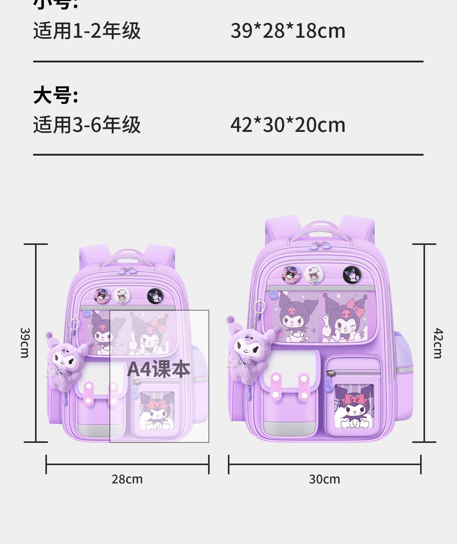 Kuromi túi nữ học sinh lớp 13 đến lớp 6 chống thấm nước giảm tải siêu nhẹ túi xách năm 2025 mới