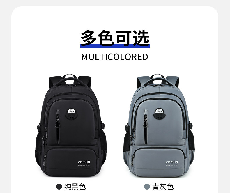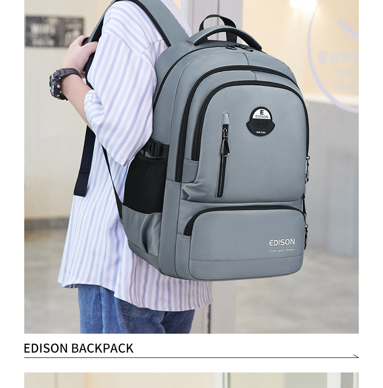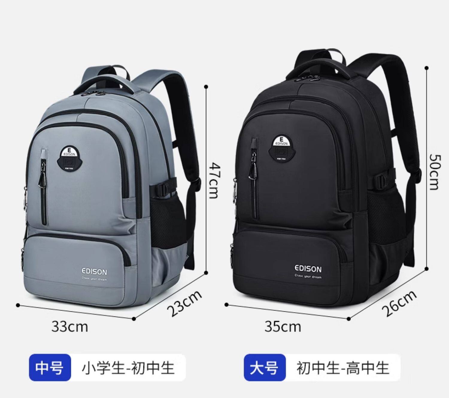 Túi học sinh trung học Edison học sinh trung học năm 2025 nam học sinh trung học trung học khối lượng lớn ba lô người đàn ông giảm gánh nặng chăm sóc xương sống của người đàn ông
