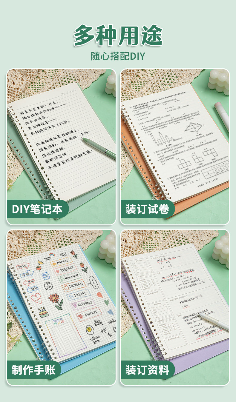 Hình dạng a4 trường hợp tập hợp hồ sơ nút bìa sách b5 một cuộn nút đóng gói máy tính xách tay mềm bìa giấy tháo rời diy tự làm phụ kiện không làm hỏng nhựa 26 lỗ