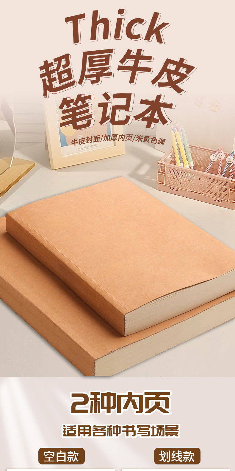 Cuốn sổ ghi chú cổ điển giấy kraft trống cuốn sổ ngắn lưu ý trình độ xuất hiện tốt A5 dày thêm các trang ngang