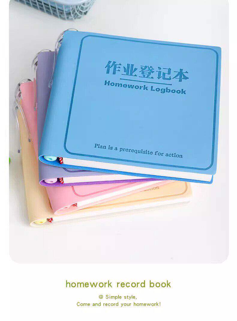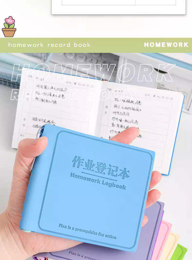 Sổ đăng ký bài tập về nhà mang theo một cuốn sổ nhỏ hình vuông ghi chú học sinh trong lớp học