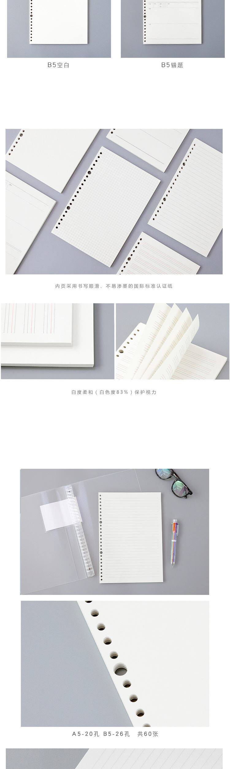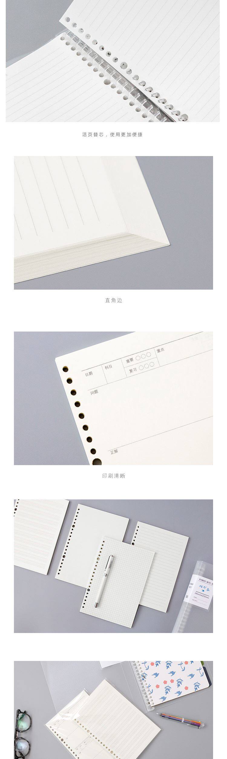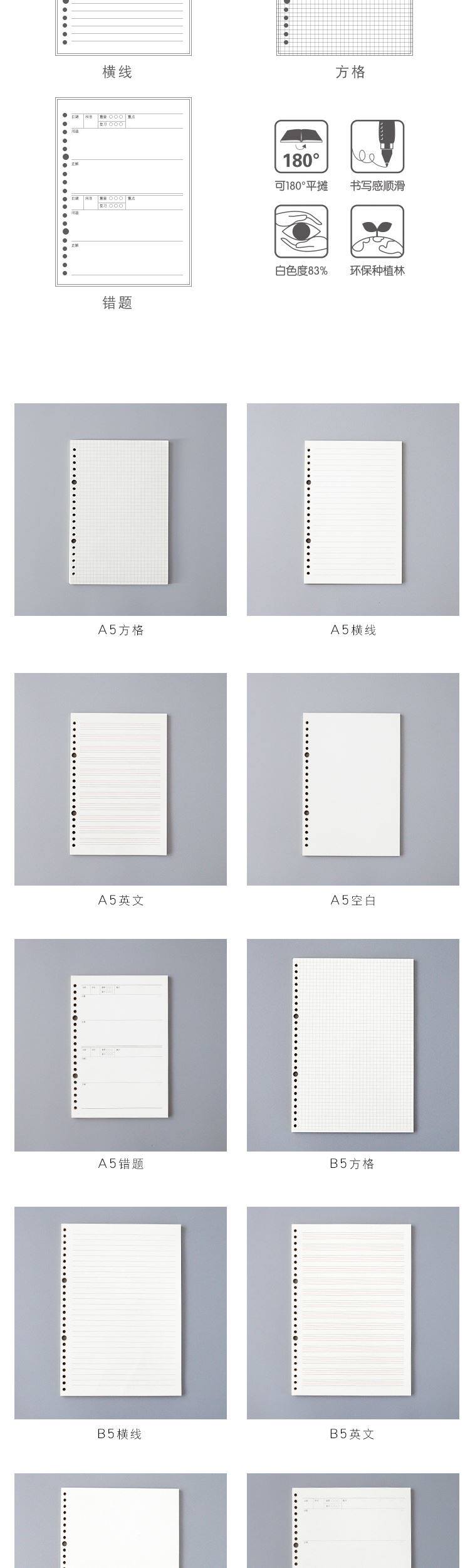 采用优质80g道林纸,书写顺滑、不易渗墨。